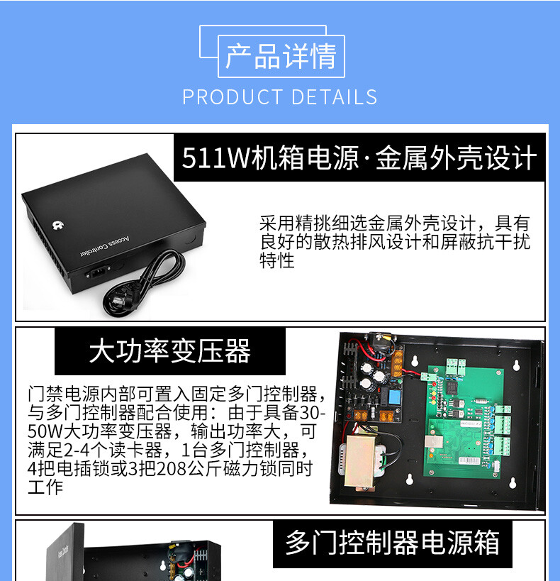 ZUCON祖程聯(lián)網(wǎng)機(jī)箱電源門禁系統(tǒng)門禁機(jī)箱電源多門控制器12V5A7A變壓器