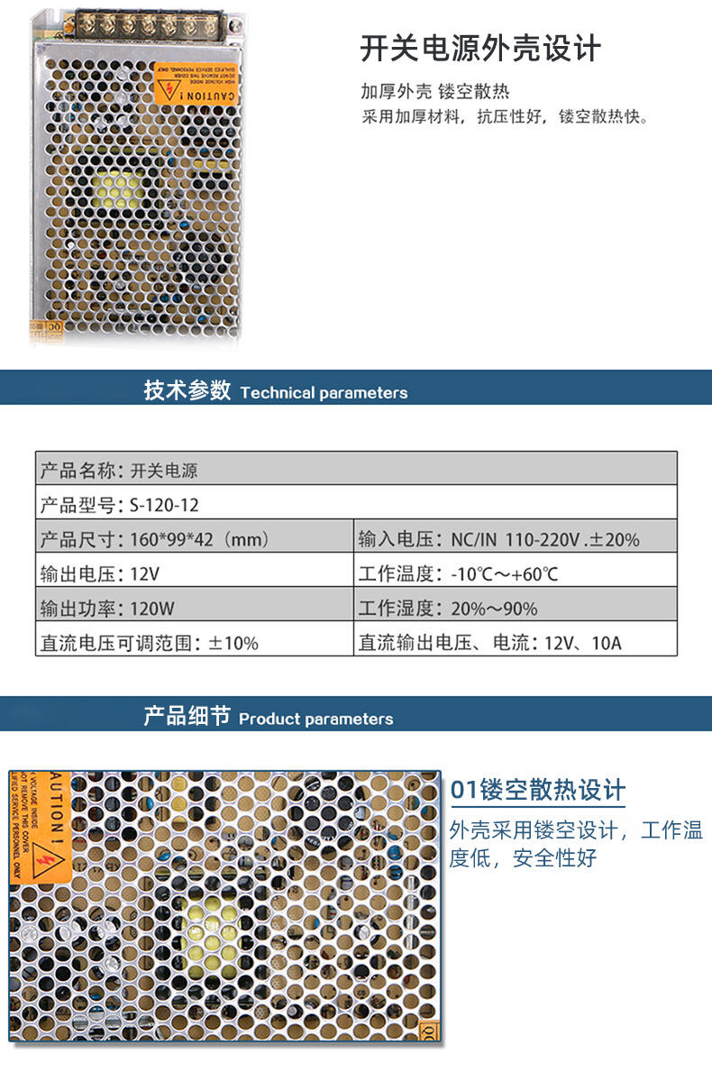 ZUCON祖程S-120-12開關電源門鎖電源 磁力鎖電插鎖12V10A 120W電源