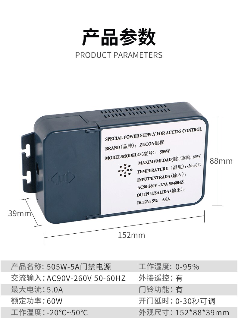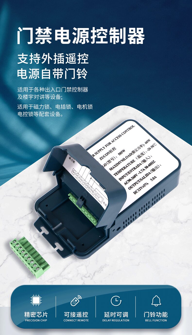ZUCON祖程505W門禁系統(tǒng)開關電源12V3A5A控制器門禁套裝人臉控制電源