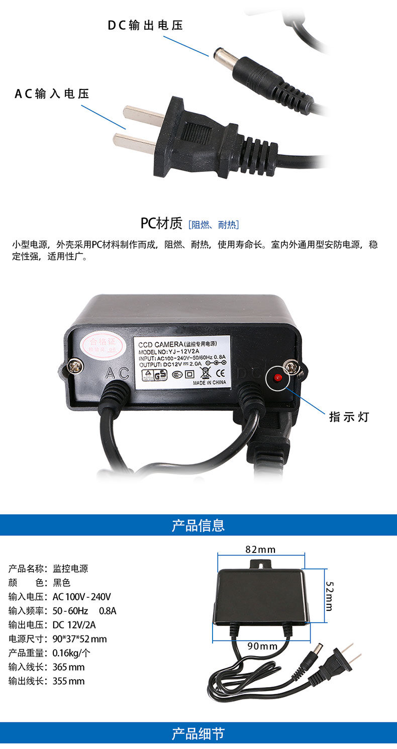 ZUCON 防水監(jiān)控電源 監(jiān)控電源適配器攝像頭攝像機(jī)電源12v2a