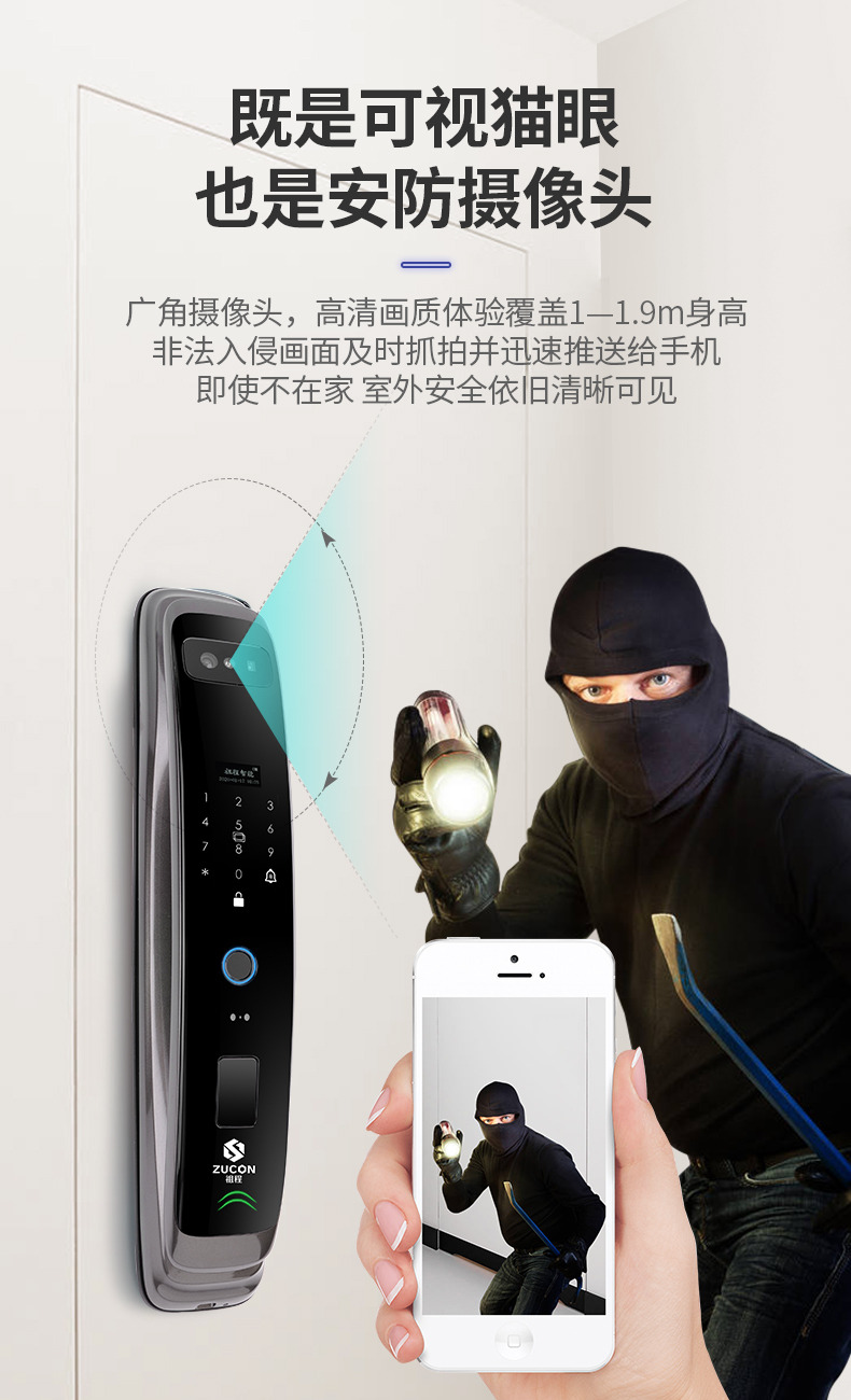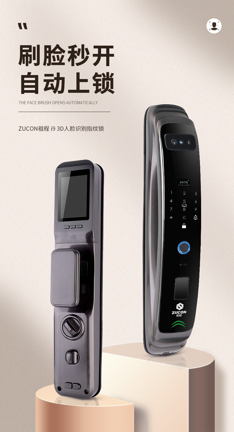 ZUCON祖程i9指紋鎖家用防盜門智能鎖電子貓眼密碼鎖wifi人臉識別門鎖