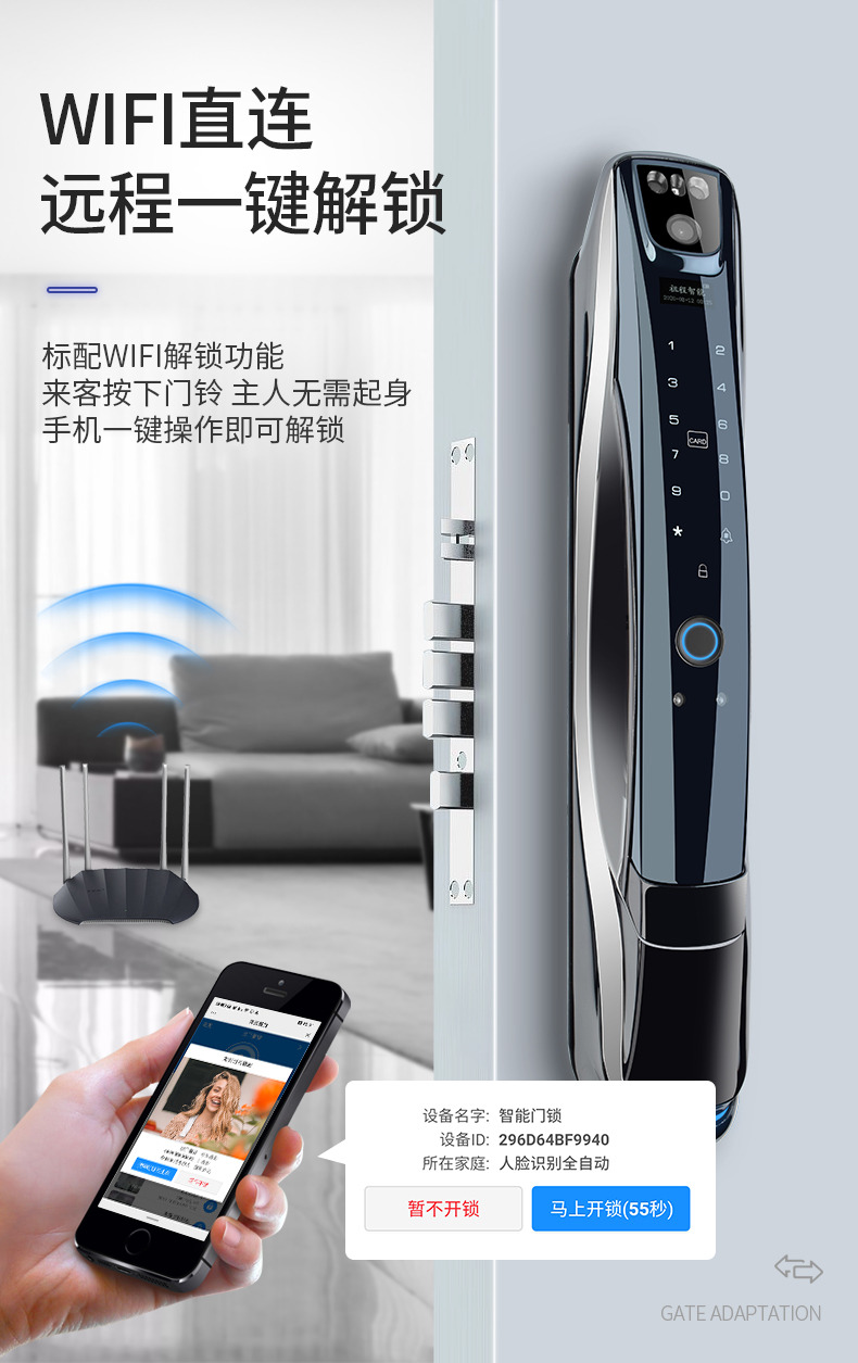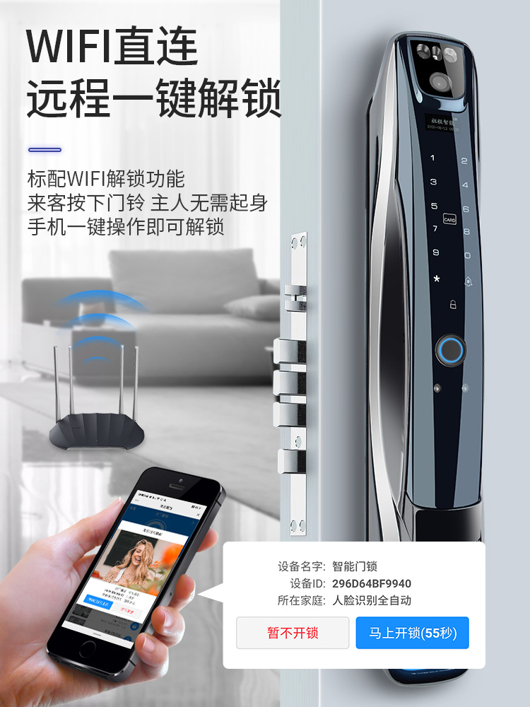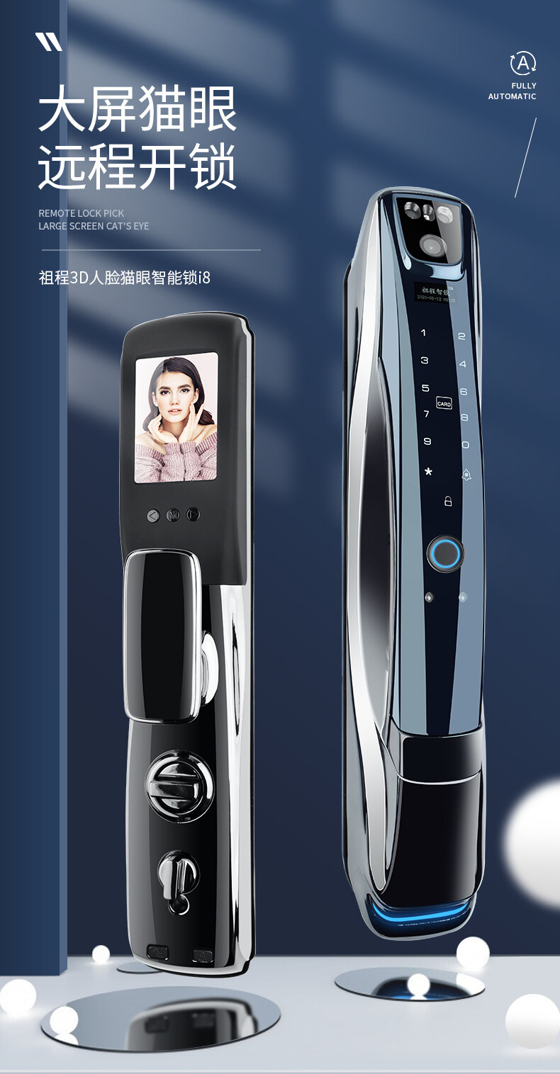 ZUCON祖程i8指紋鎖家用防盜門智能鎖電子貓眼密碼鎖wifi人臉識別門鎖