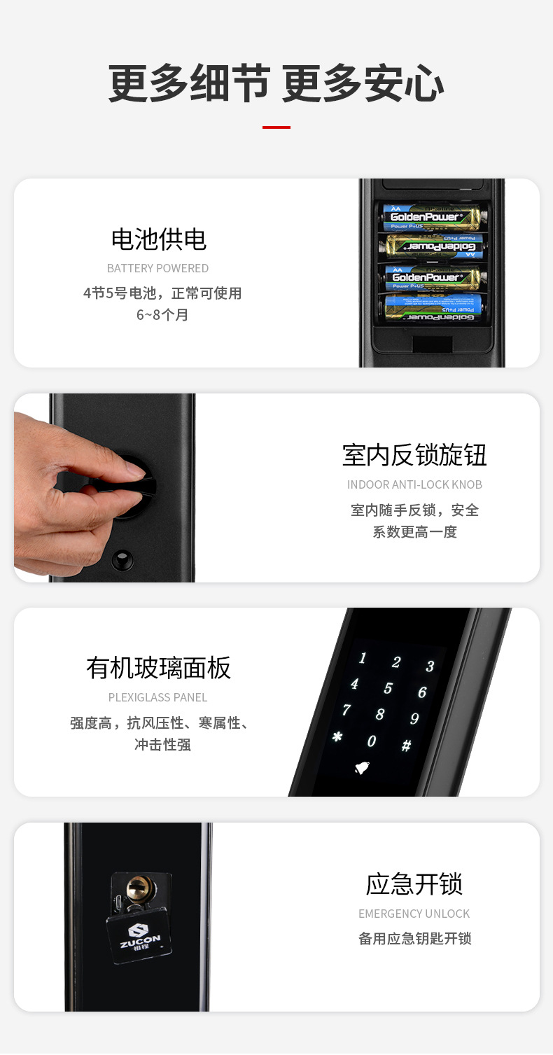 ZUCON祖程F590指紋鎖家用防盜門智能鎖指紋密碼刷卡鎖手機App遠程