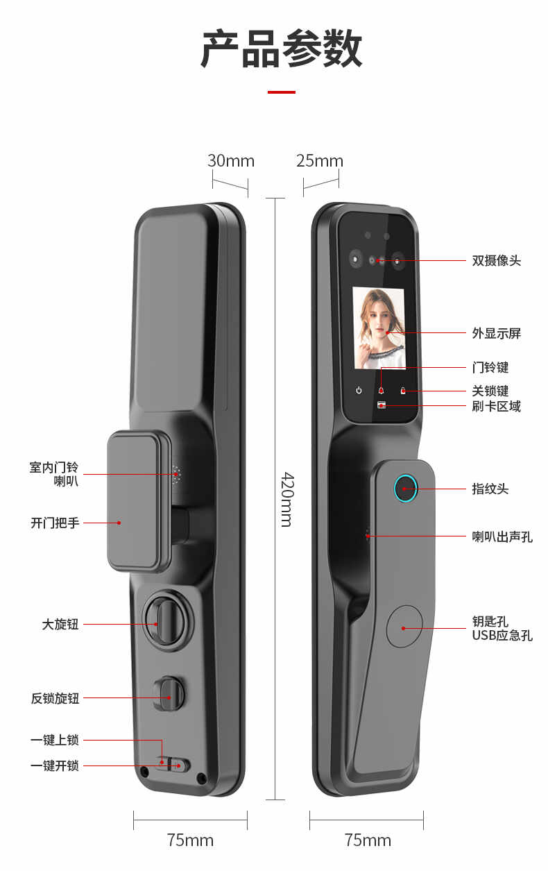 ZUCON祖程F895指紋鎖家用防盜門智能電子門鎖密碼鎖紅外人臉識別門鎖