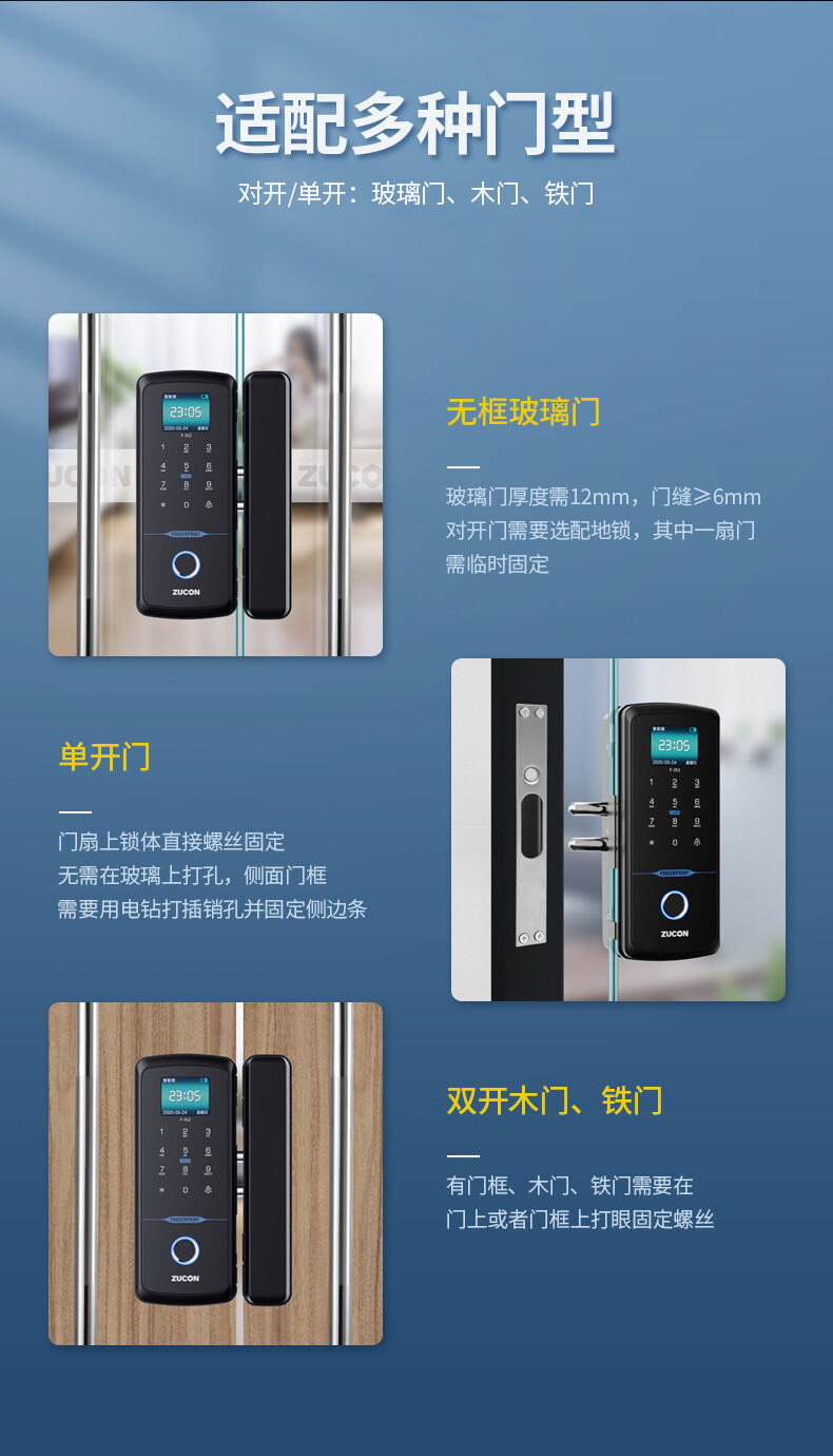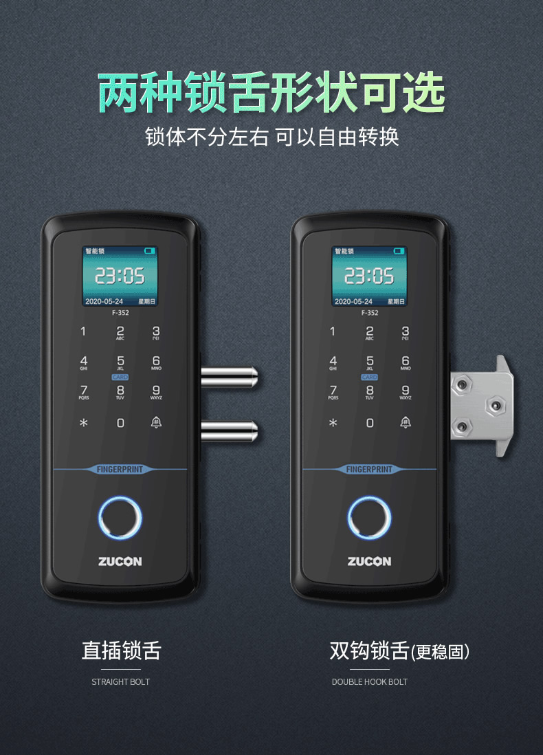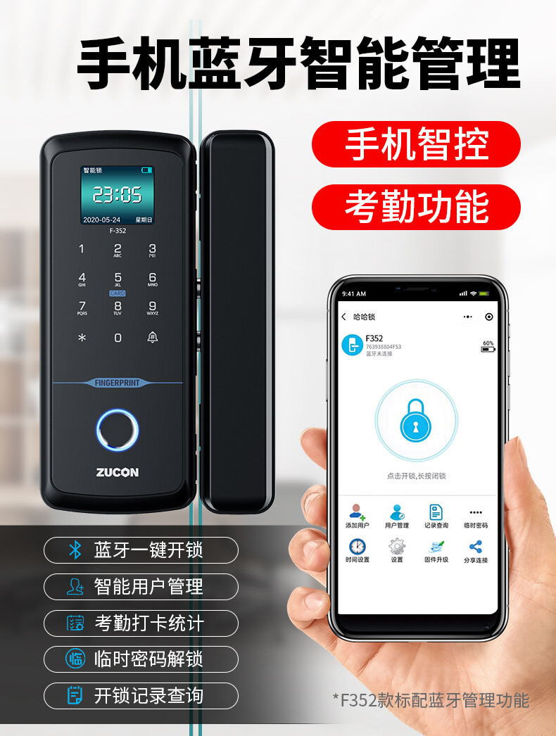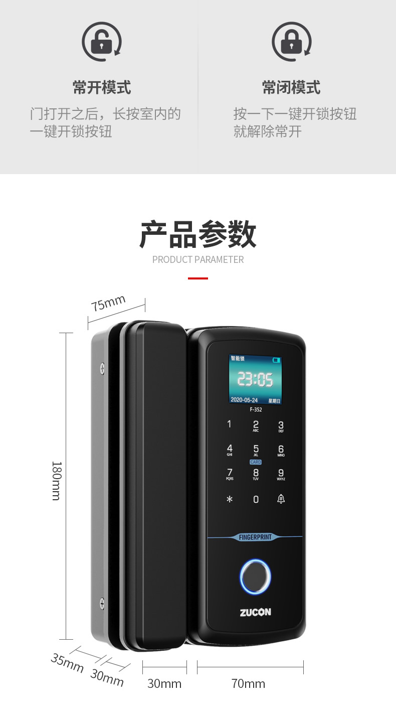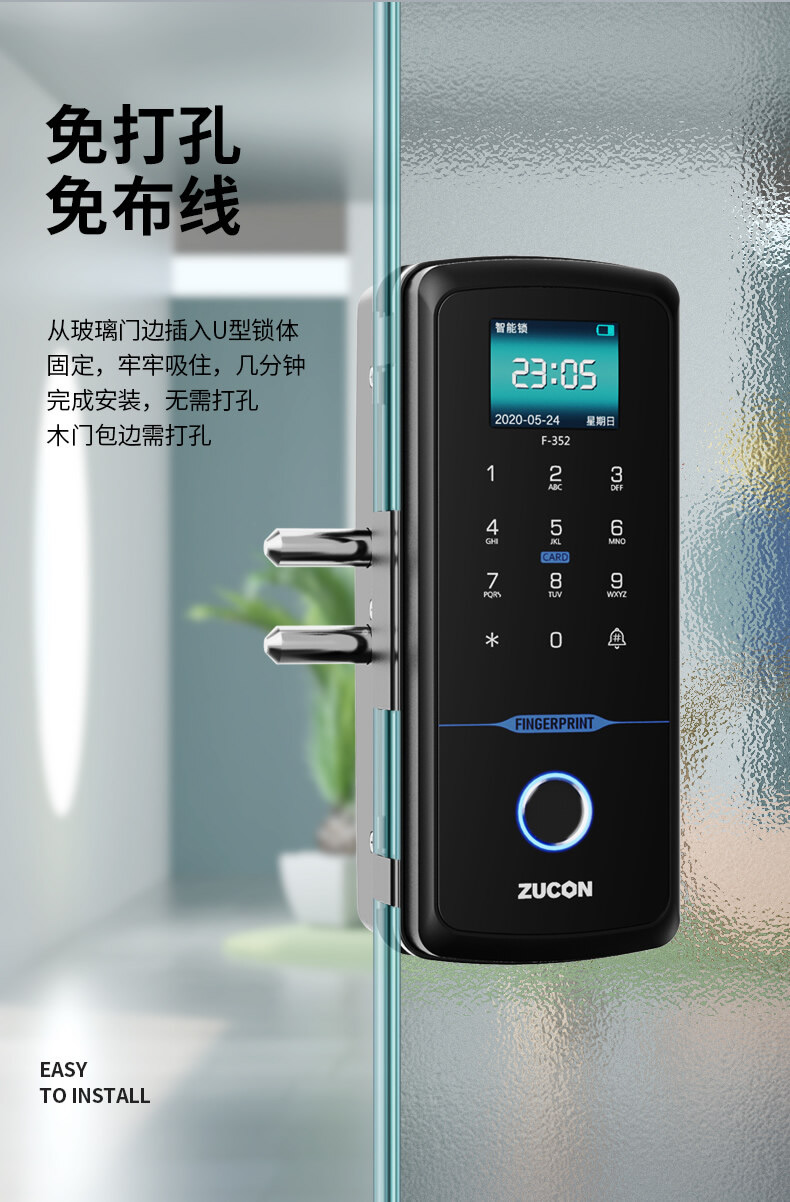 F352玻璃門指紋鎖單雙門有框免開孔辦公室智能電子門禁遙控密碼刷卡鎖