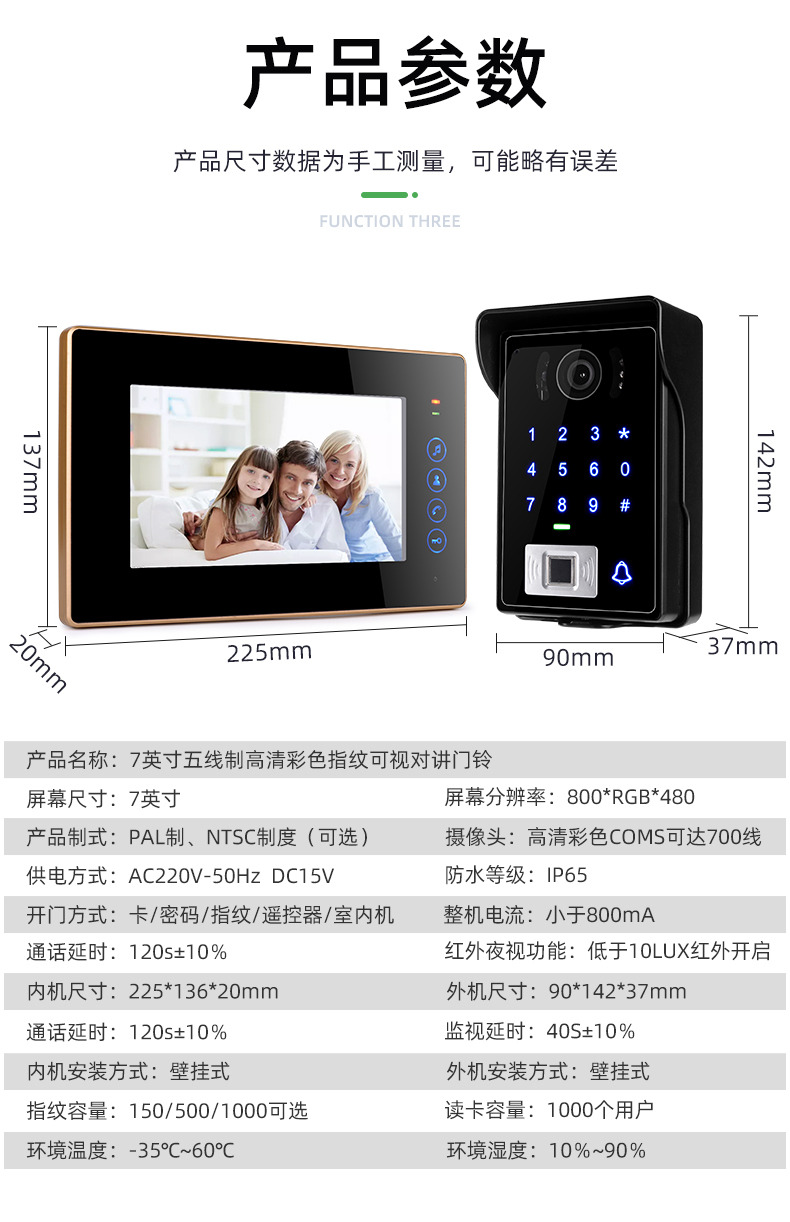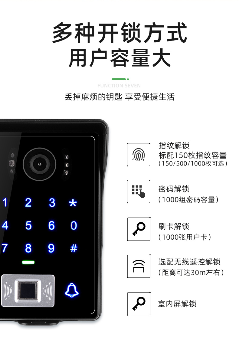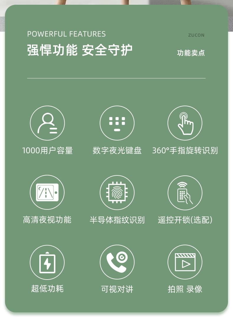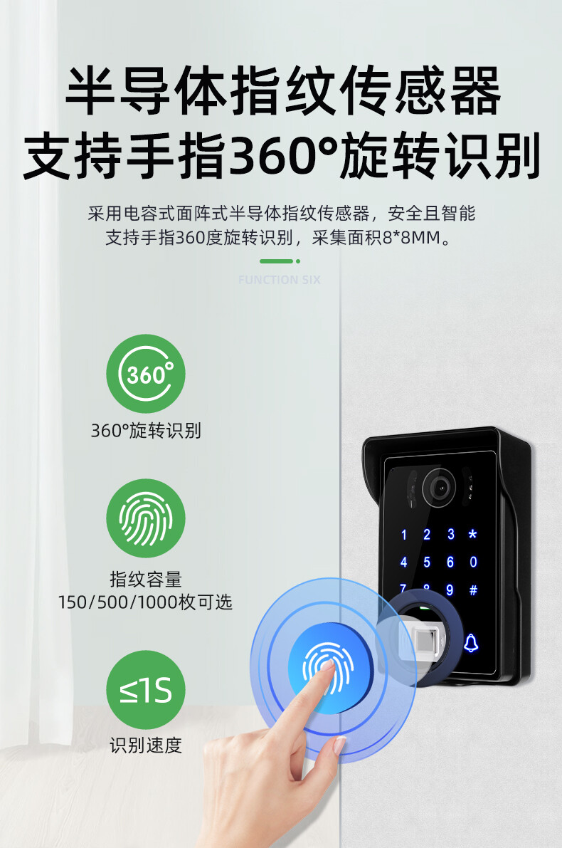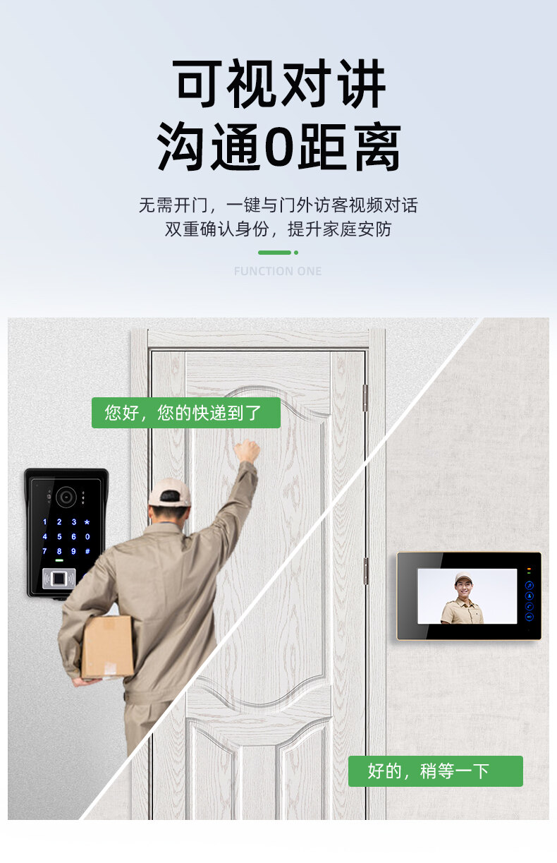 ZUCON祖程MF400別墅可視對(duì)講門鈴家用高清庭院門指紋防水室外電子貓眼