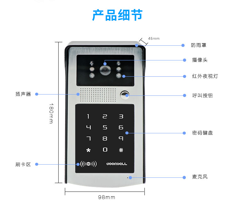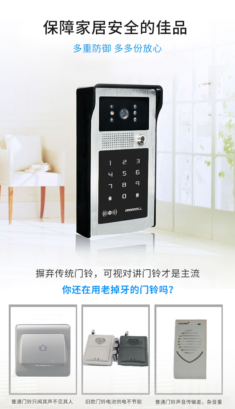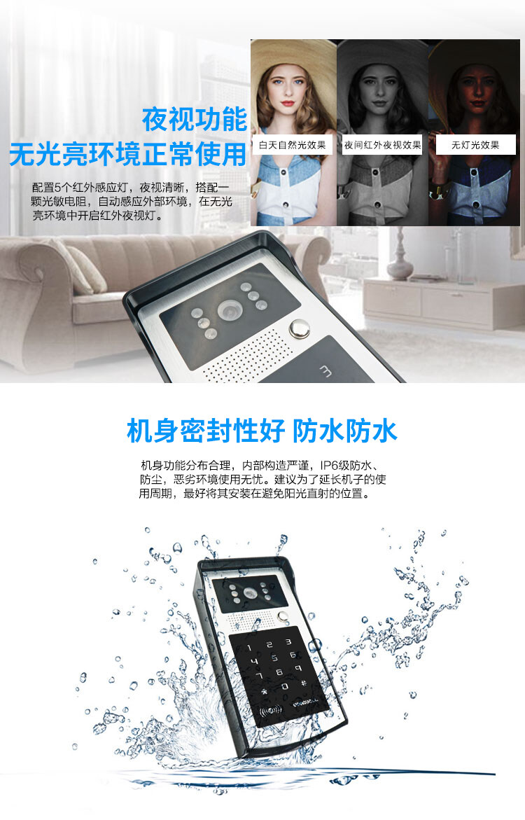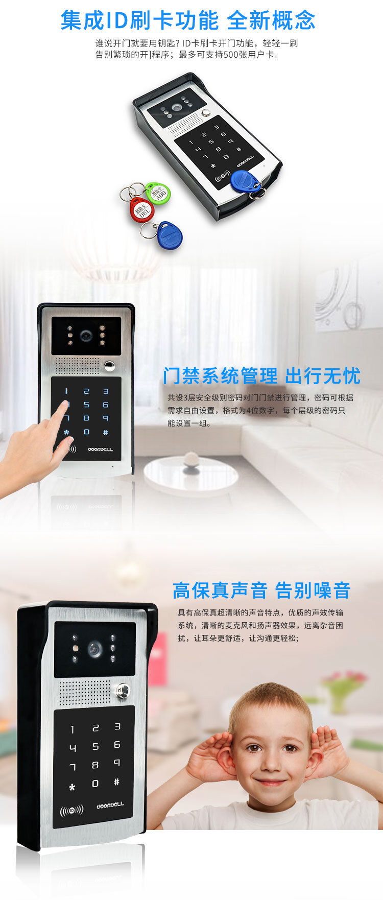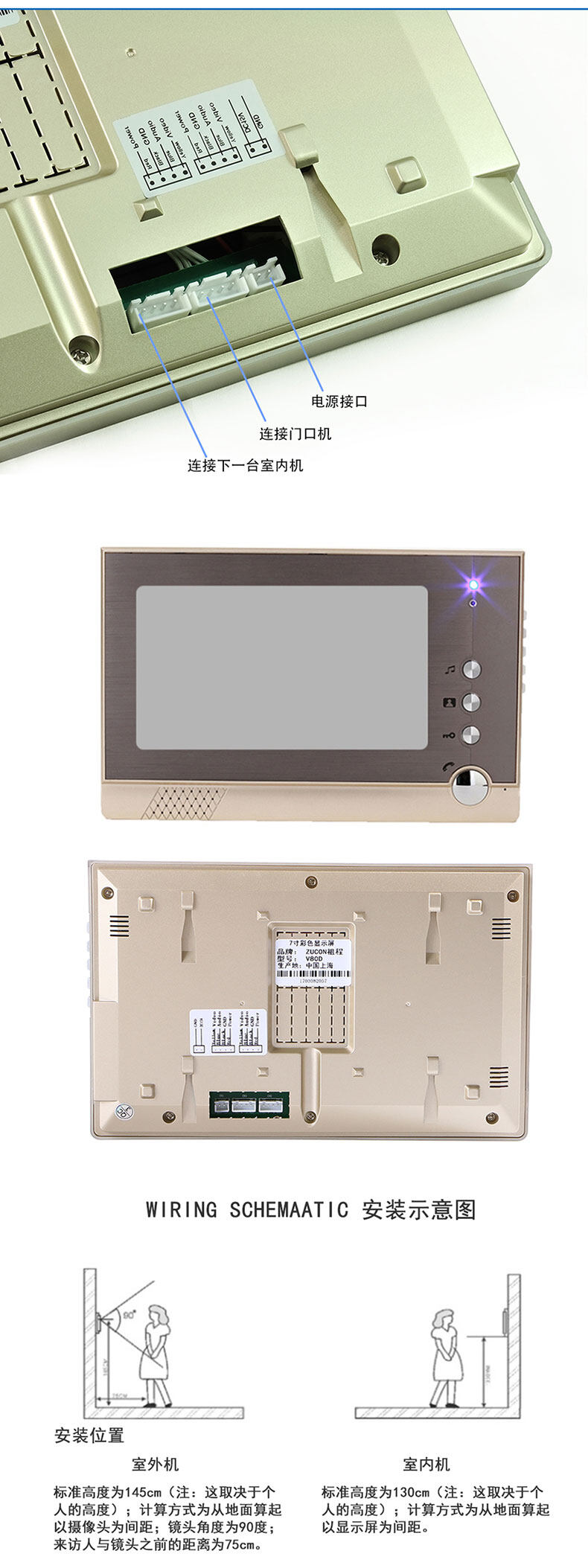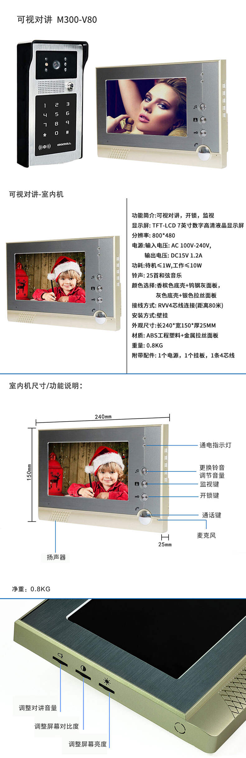 ZUCON祖程M300門禁系統(tǒng)可視對(duì)講彩色高清夜視7寸可視對(duì)講門鈴刷卡密碼一體