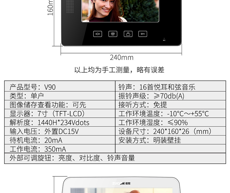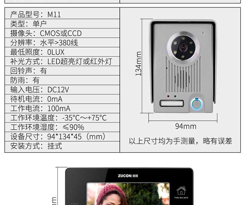 ZUCON祖程M10、M11別墅有線可視對(duì)講彩色高清夜視7寸10寸可視對(duì)講門(mén)鈴