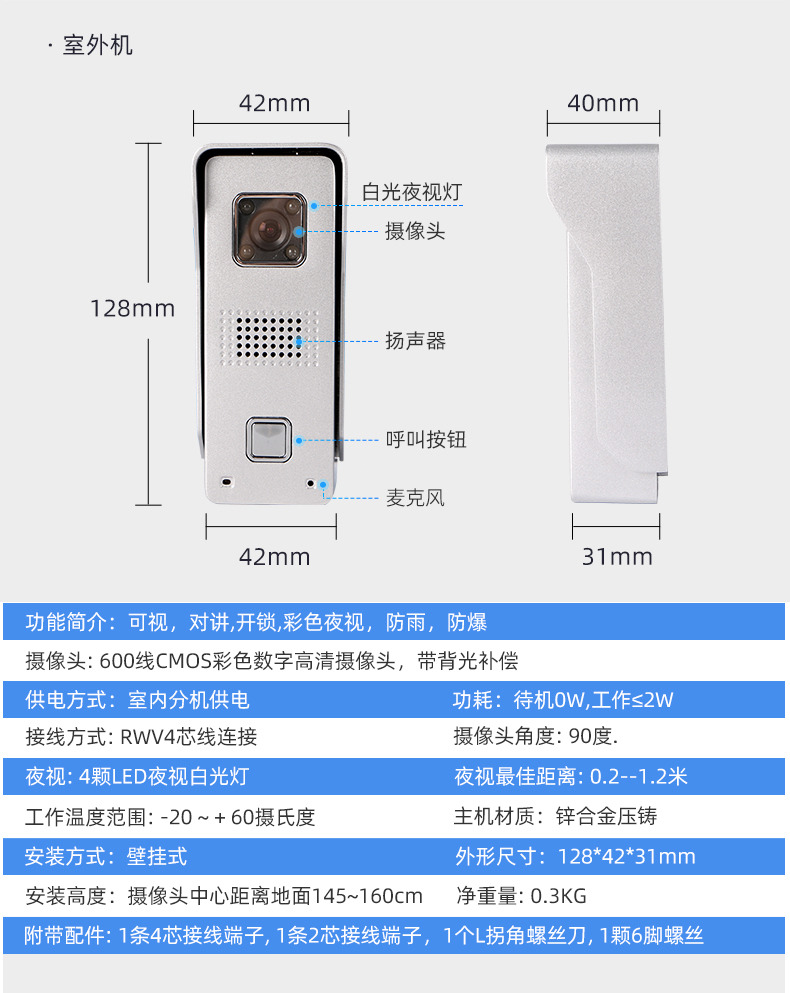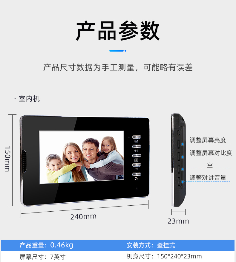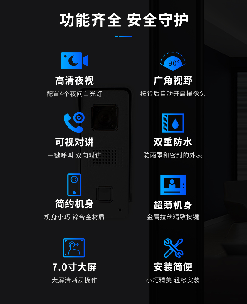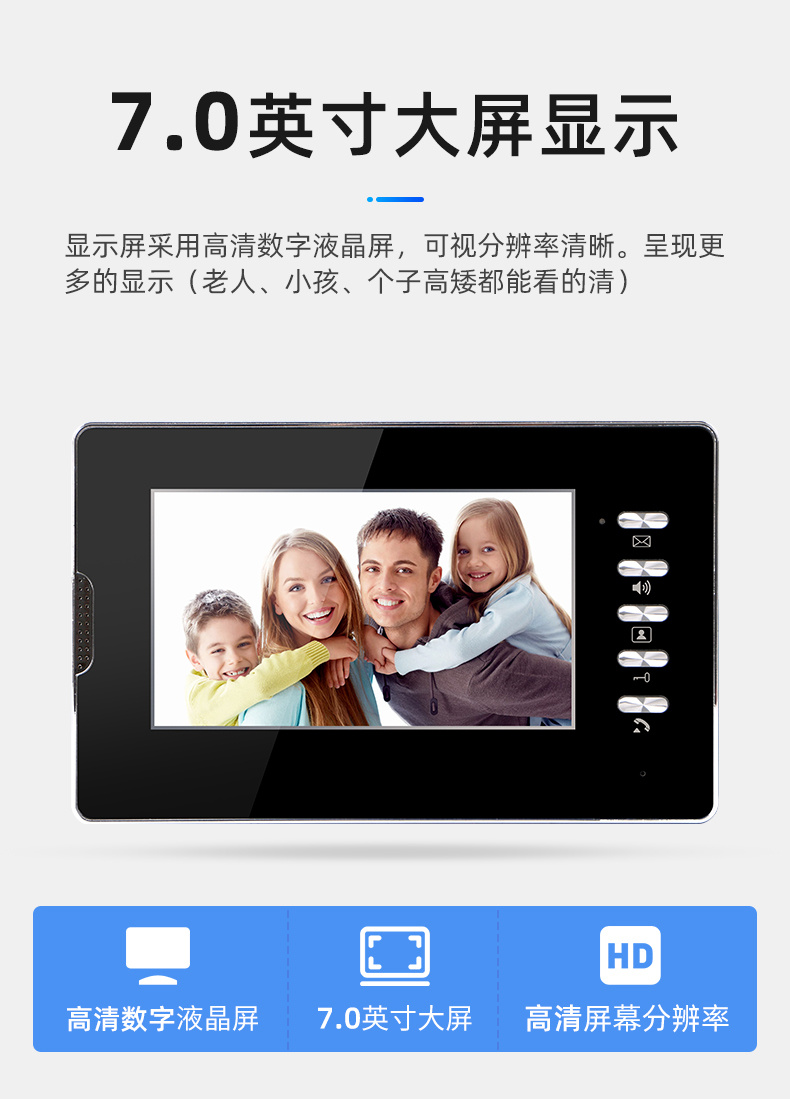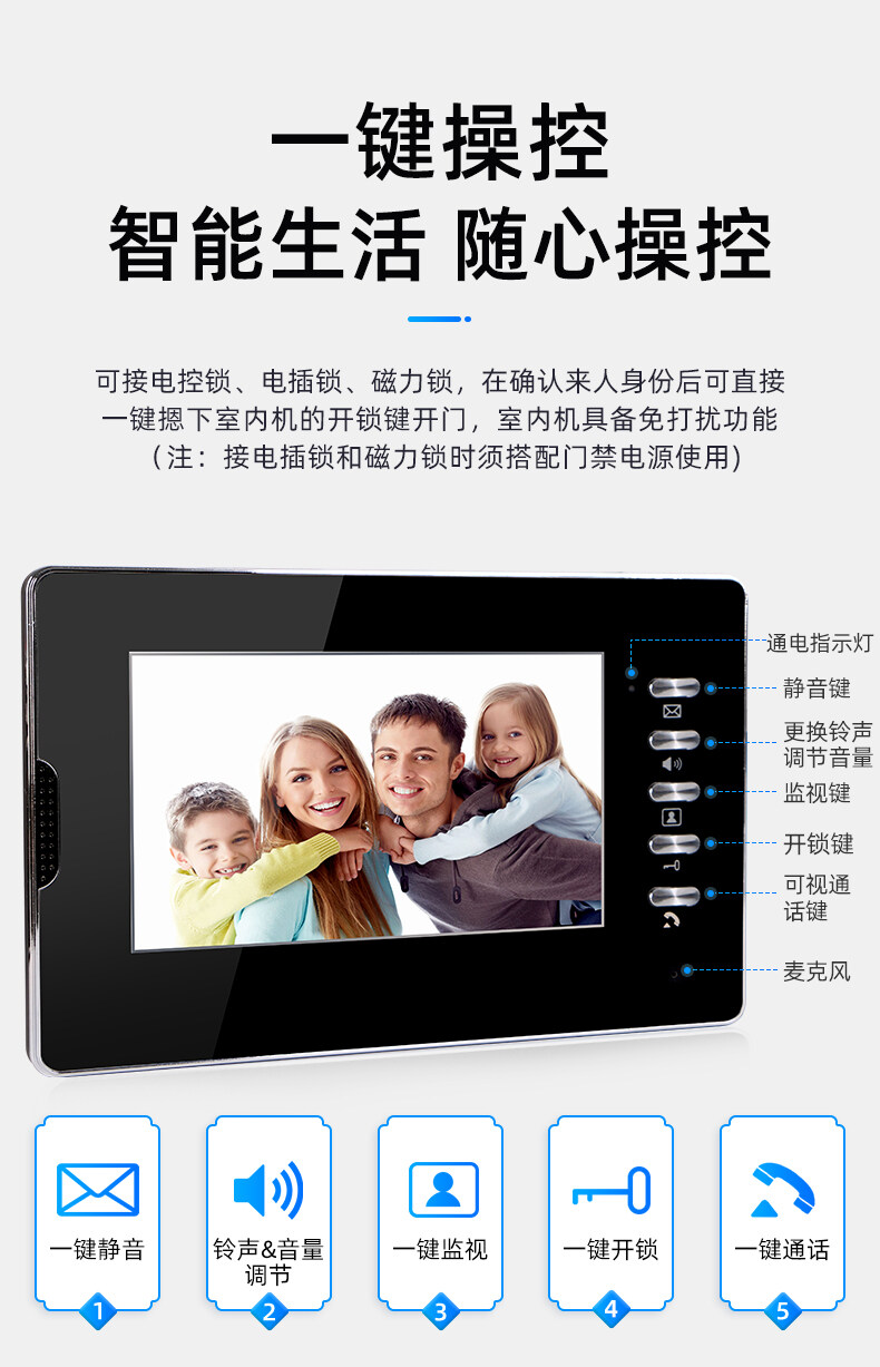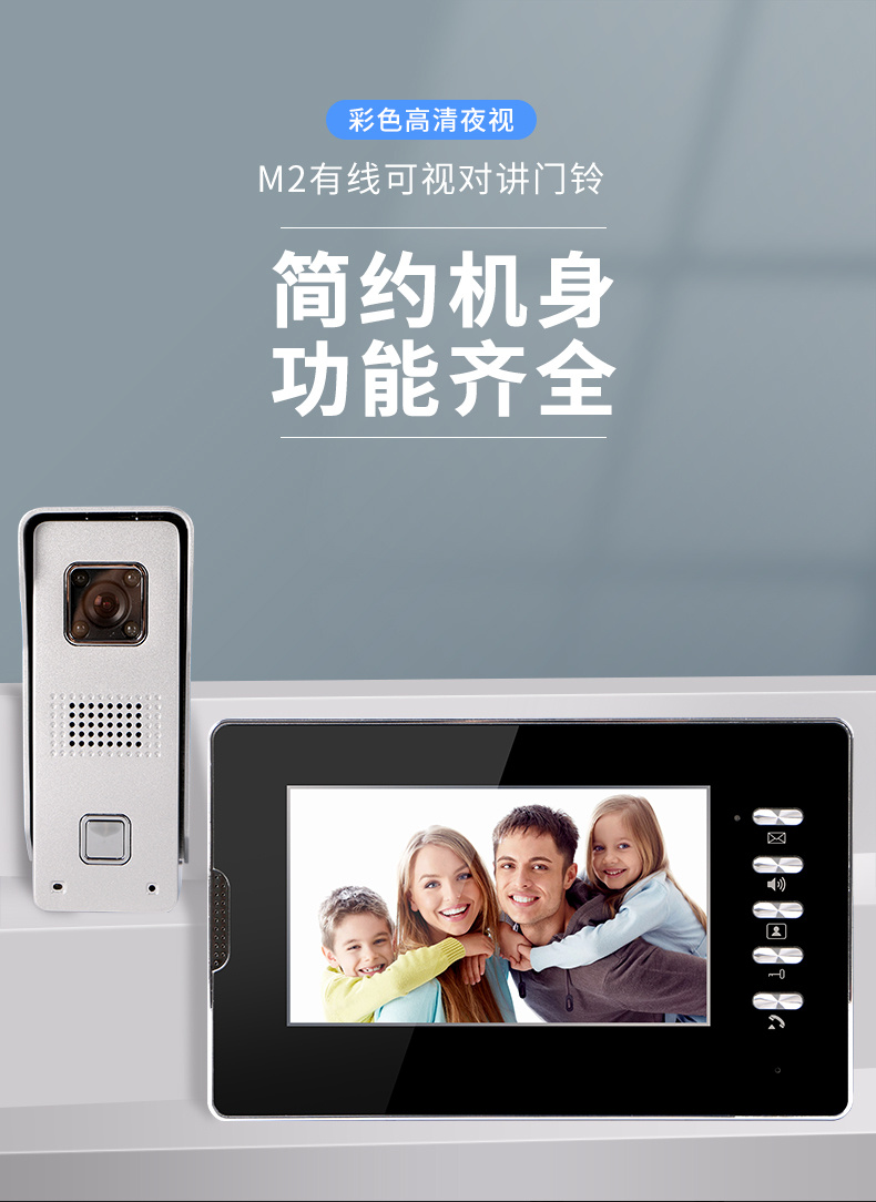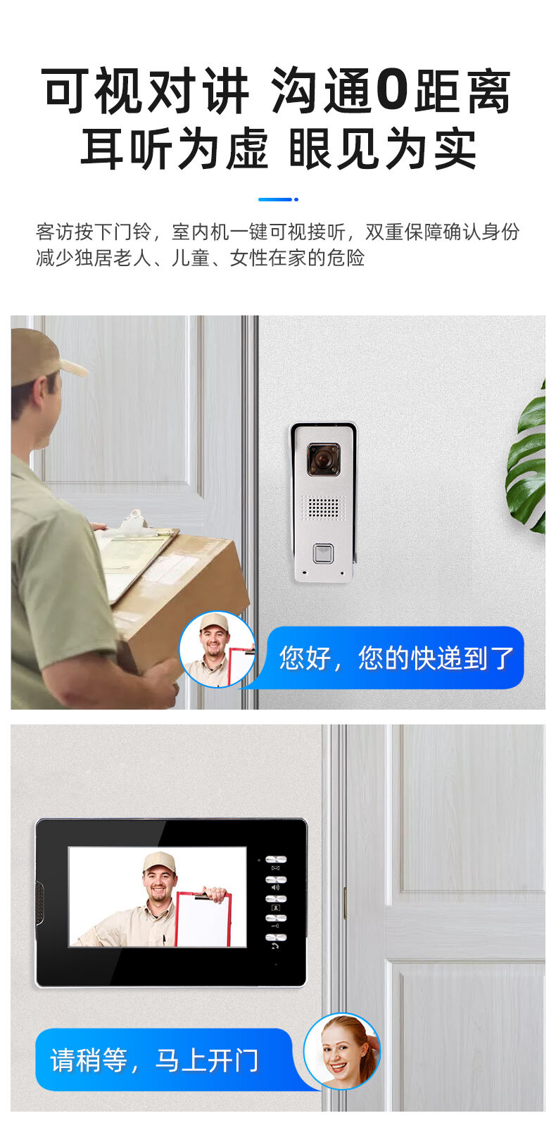 ZUCON祖程M2有線可視對(duì)講 7寸可視彩色高清夜視對(duì)講門鈴 家用辦公包郵