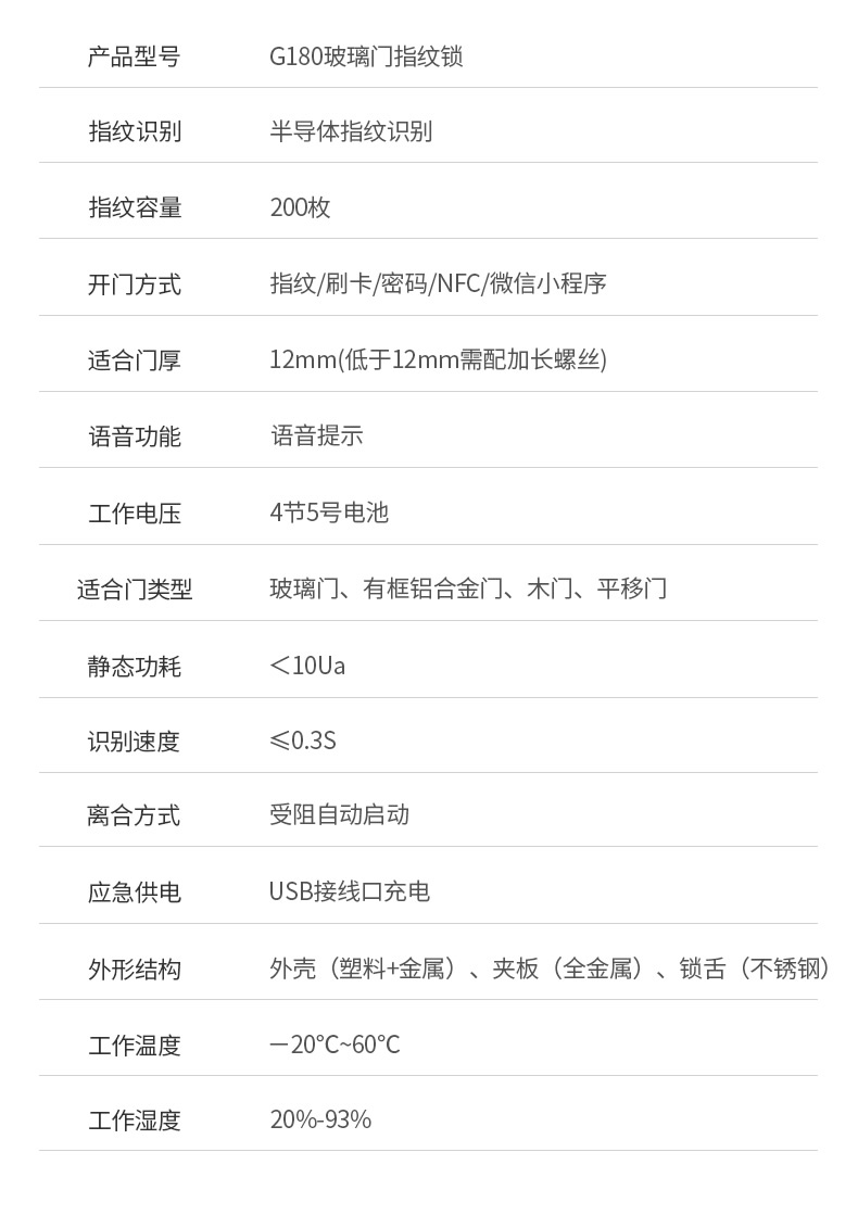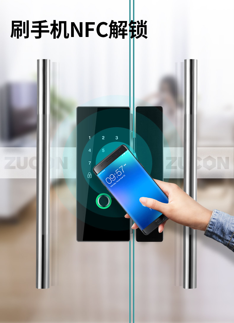 ZUCON祖程G180玻璃門(mén)指紋鎖辦公室密碼鎖免開(kāi)孔單雙門(mén)鎖智能電子鎖門(mén)禁鎖