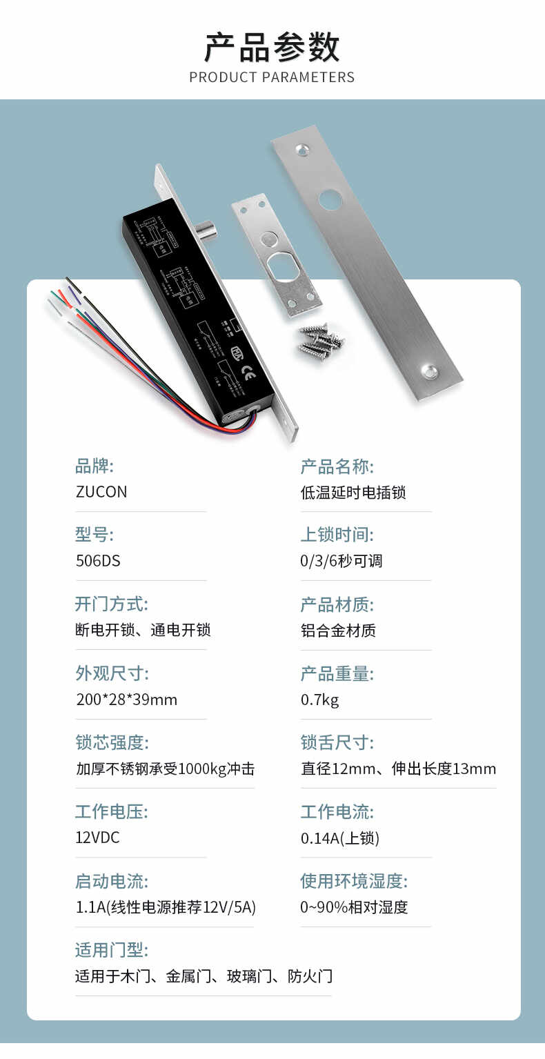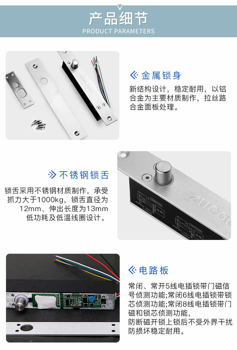 ZUCON祖程506DS祖程門禁電插鎖常閉斷電鎖12V24V門磁信號(hào)超市無人柜
