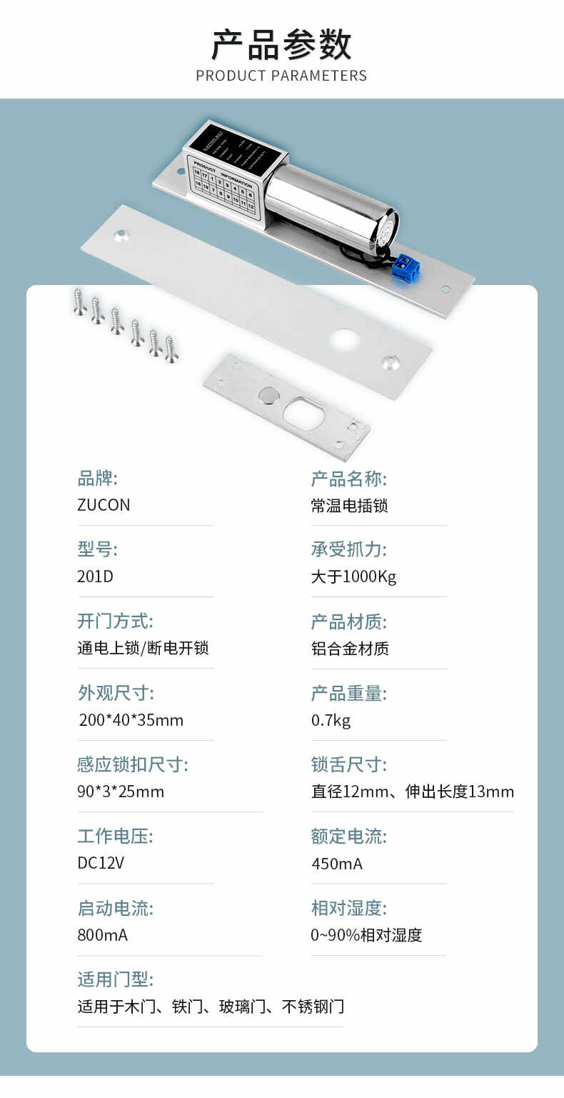 ZUCON祖程201D兩芯電插鎖加強(qiáng)型電插鎖門禁配套電插鎖耐用穩(wěn)定常溫鎖