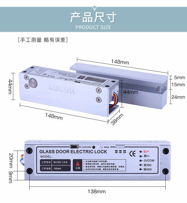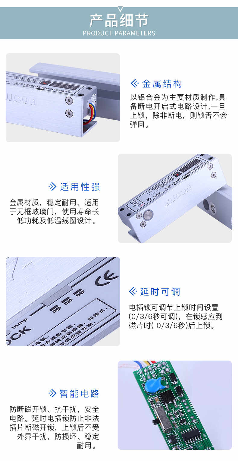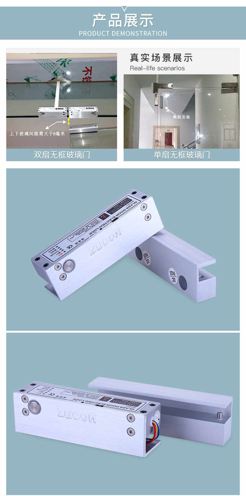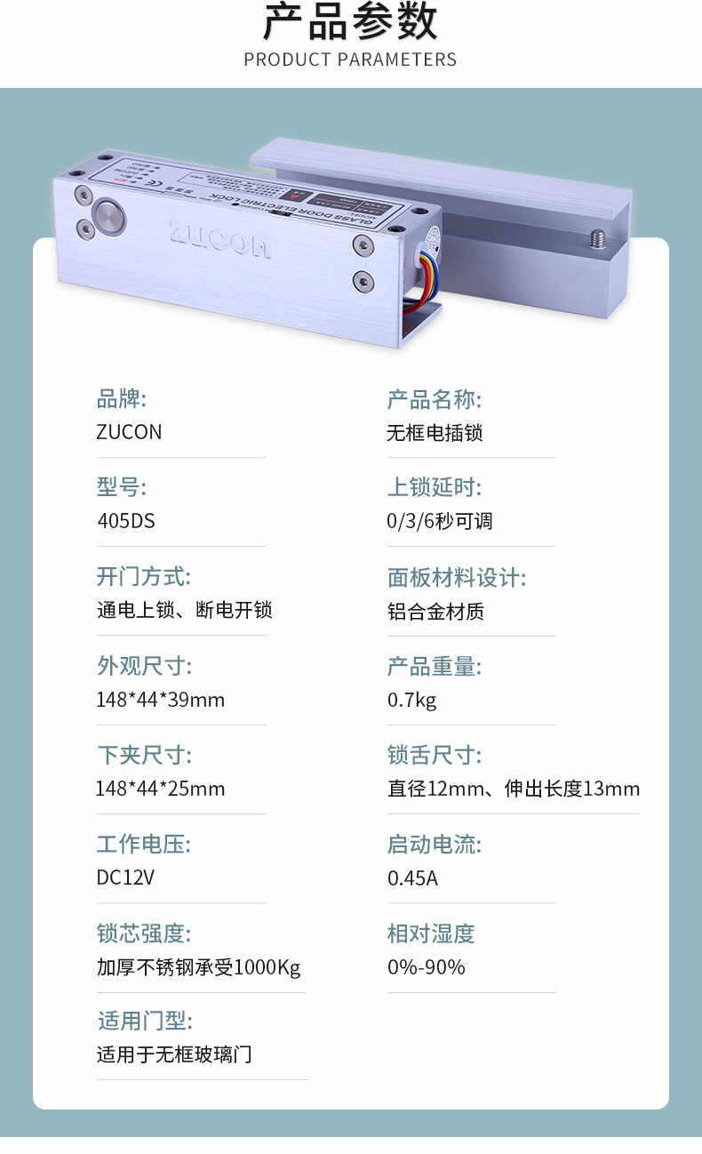 ZUCON祖程405DS無框玻璃門鎖鋁合金上下無框玻璃電鎖 五芯無框電插鎖