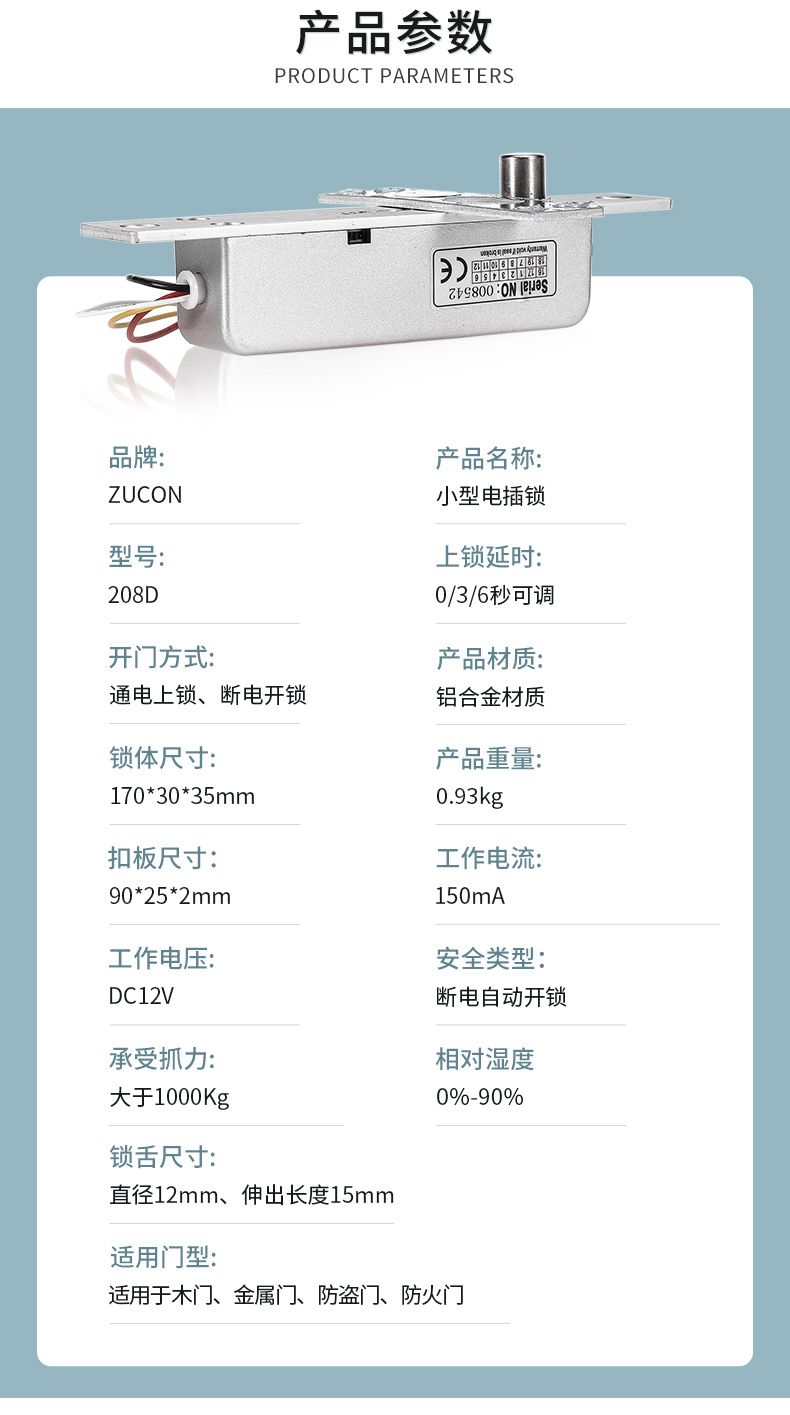 ZUCON祖程208D祖程低溫電插鎖玻璃門鎖電子鎖門禁系統(tǒng)斷電開插銷鎖