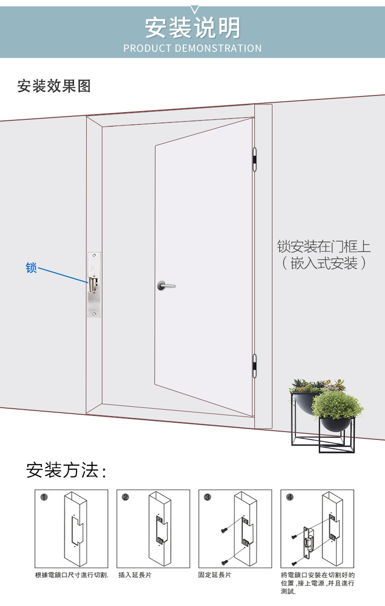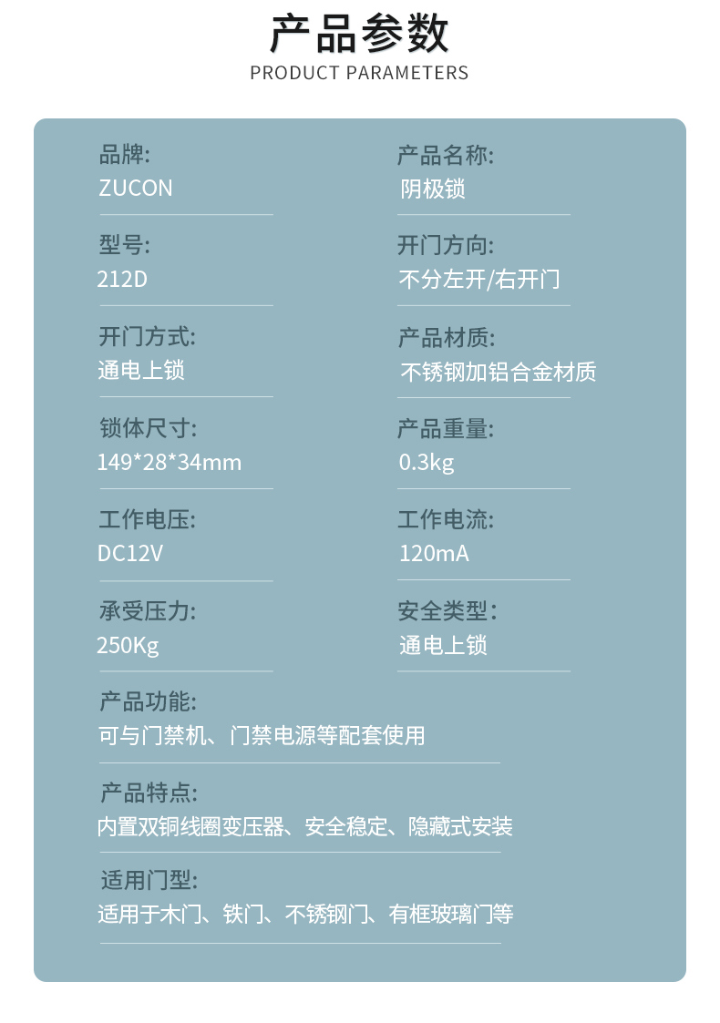 ZUCON祖程212D陰極鎖木門鐵門鎖12V電控鎖通電開門鎖斷電關門鎖電插鎖
