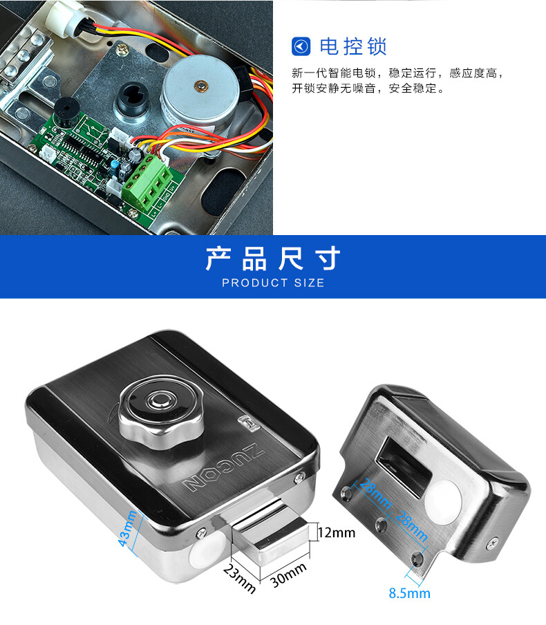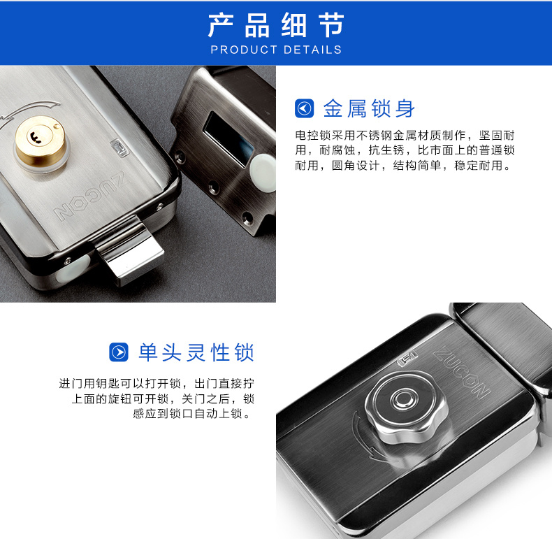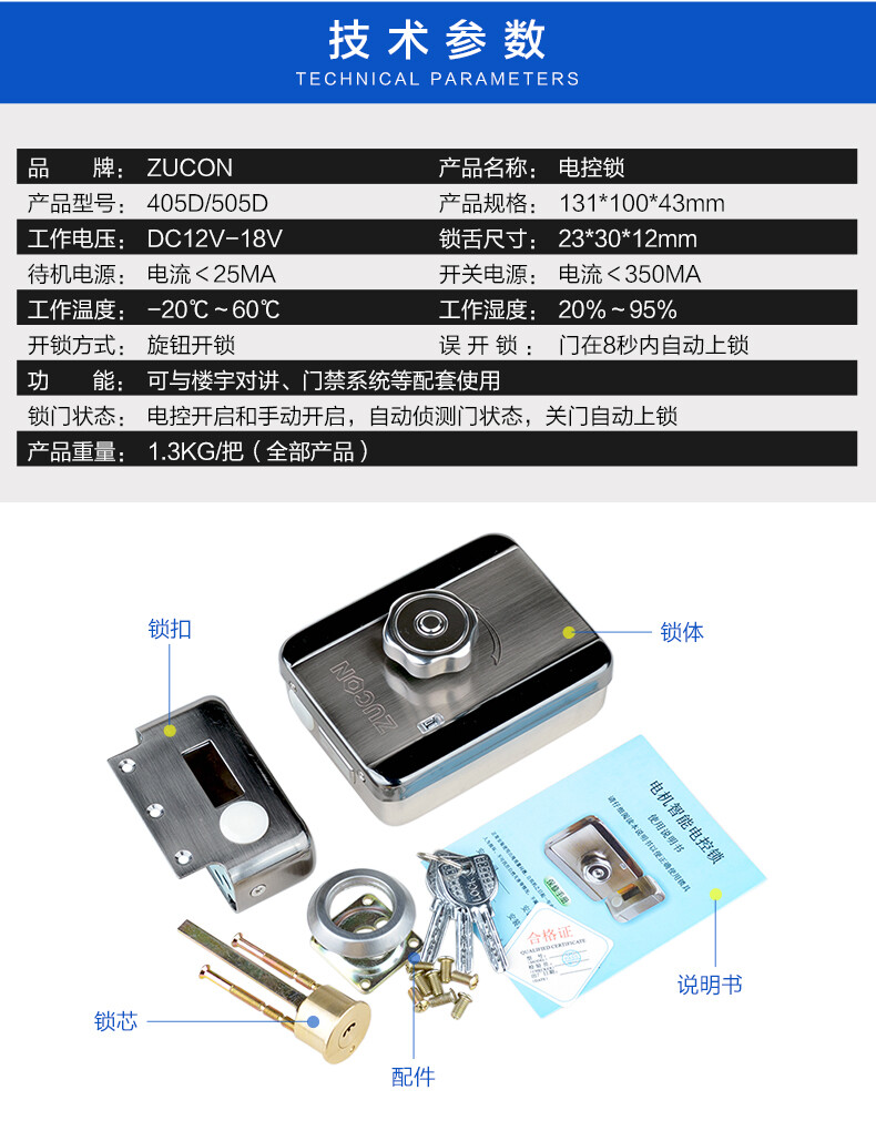 ZUCON祖程405D、505D電控門禁鎖靈性靜音電鎖單元門電控鎖單門樓宇門電控鎖