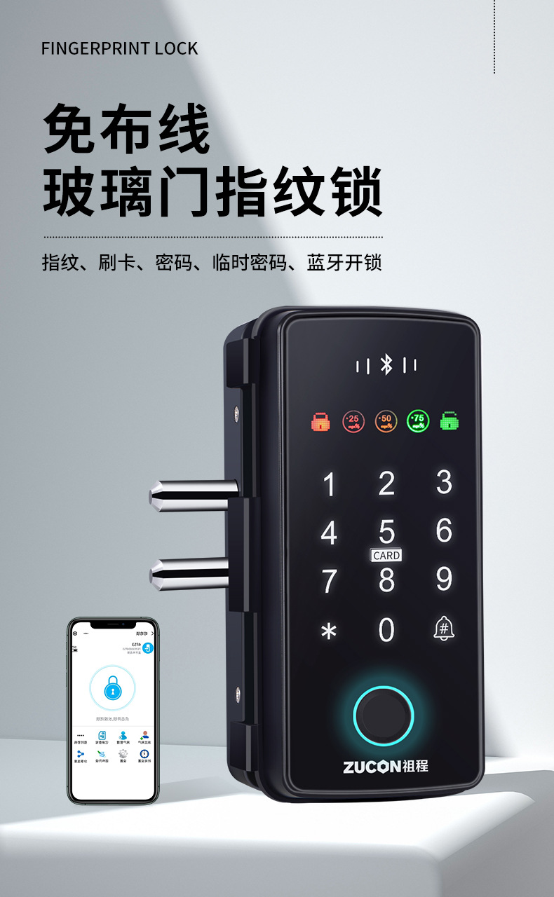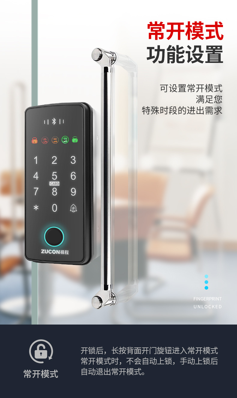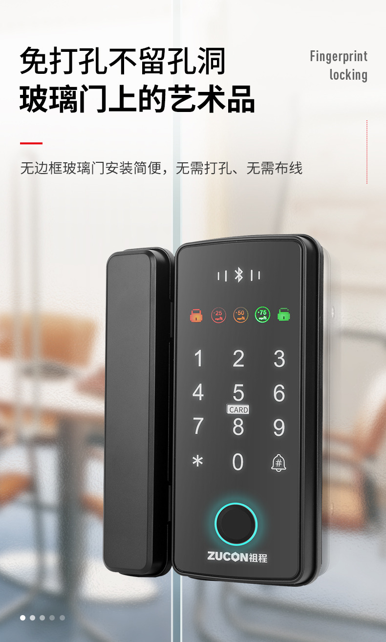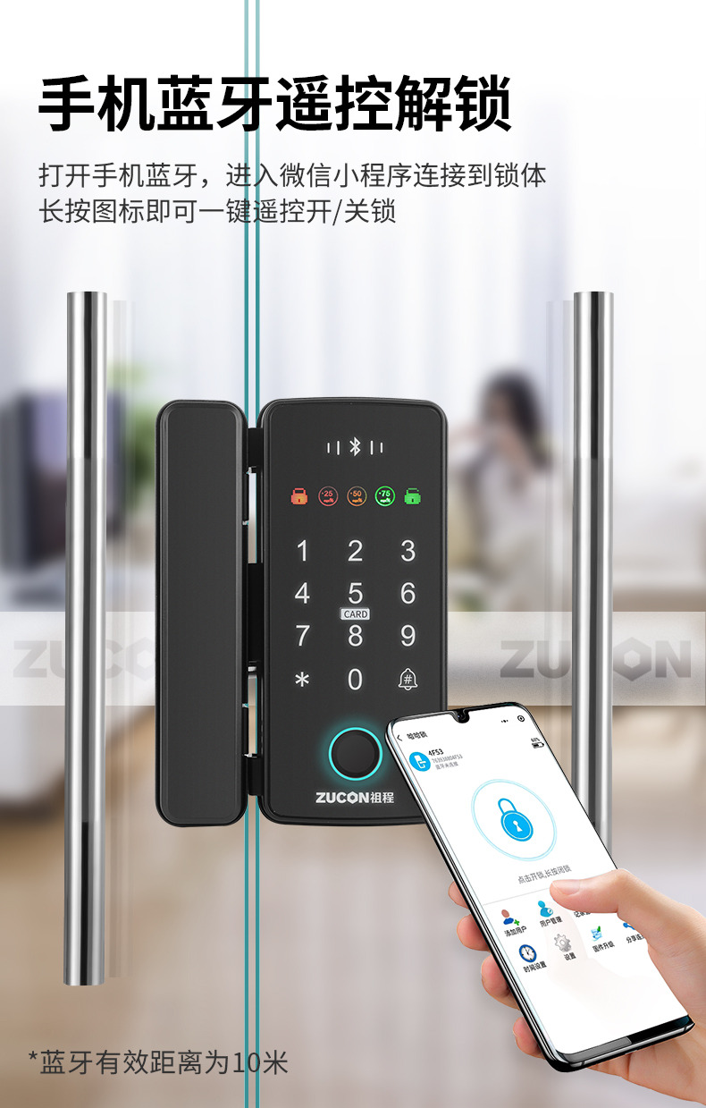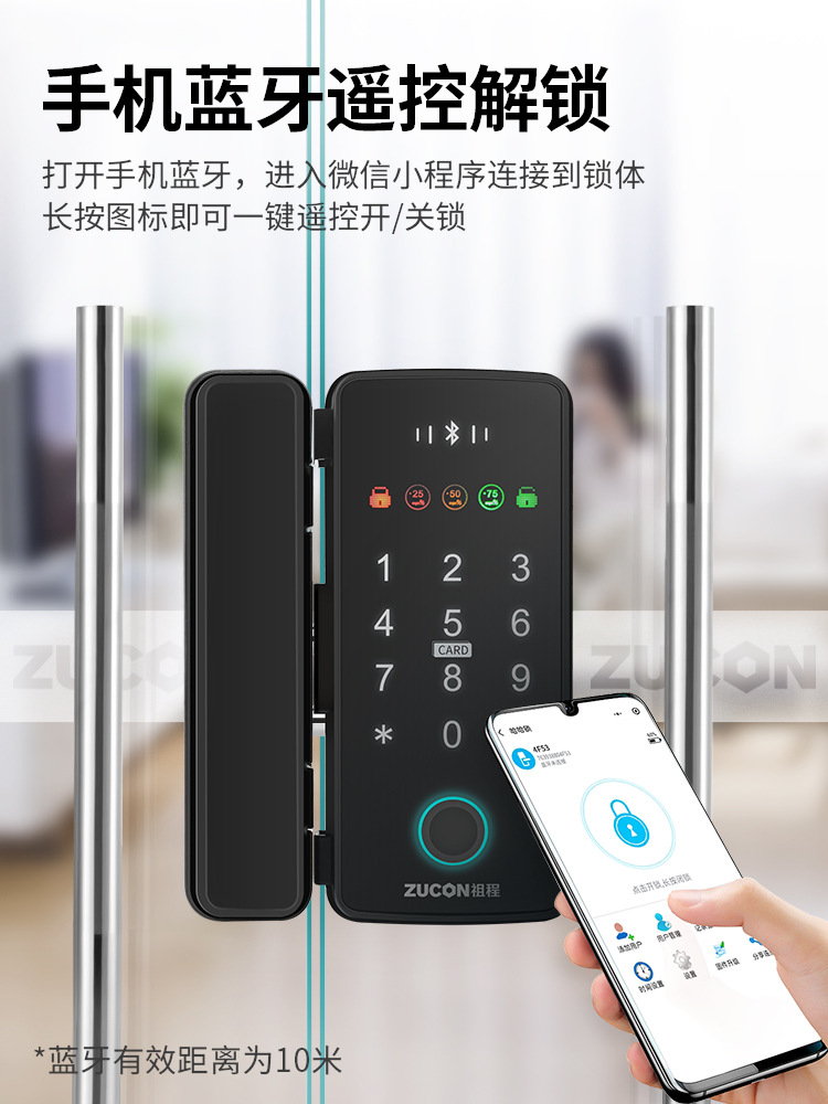ZUCON祖程F340玻璃門(mén)指紋密碼鎖辦公室密碼遙控門(mén)鎖單雙門(mén)智能電子門(mén)禁鎖