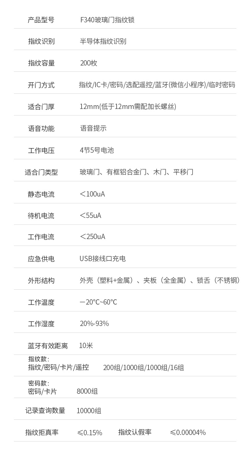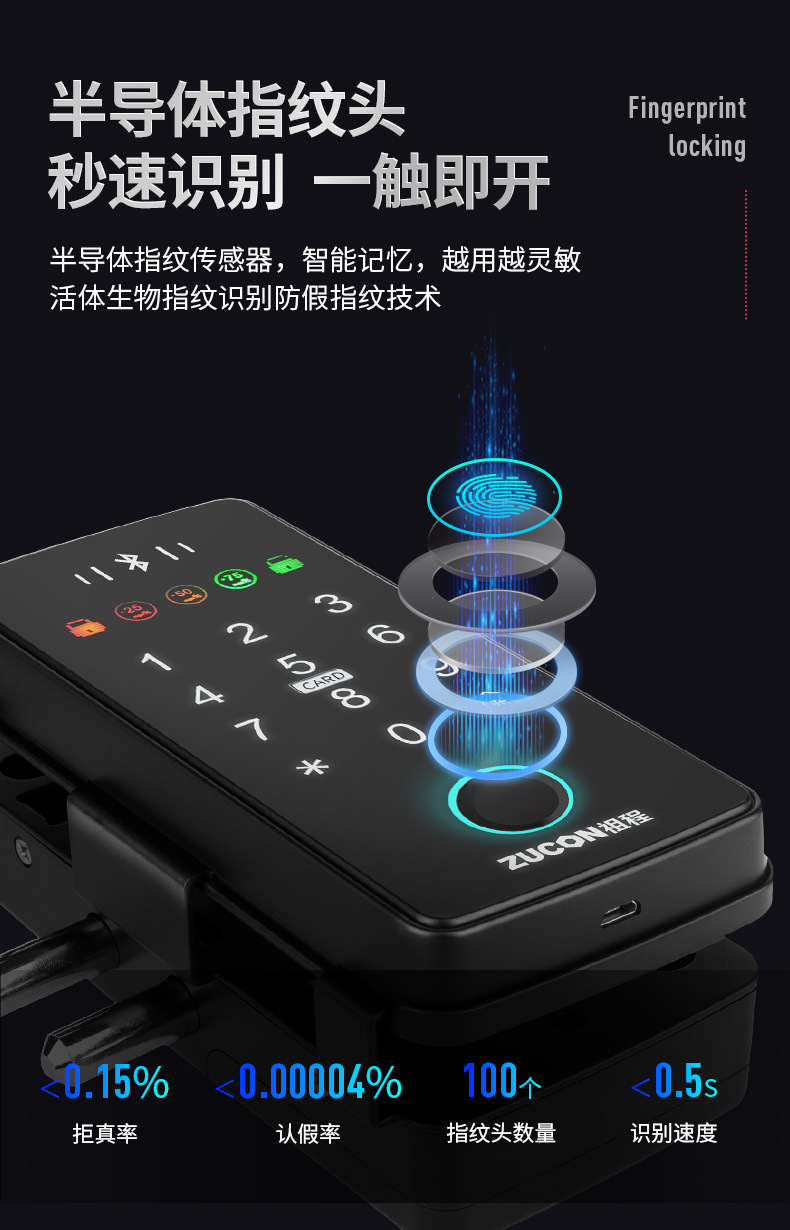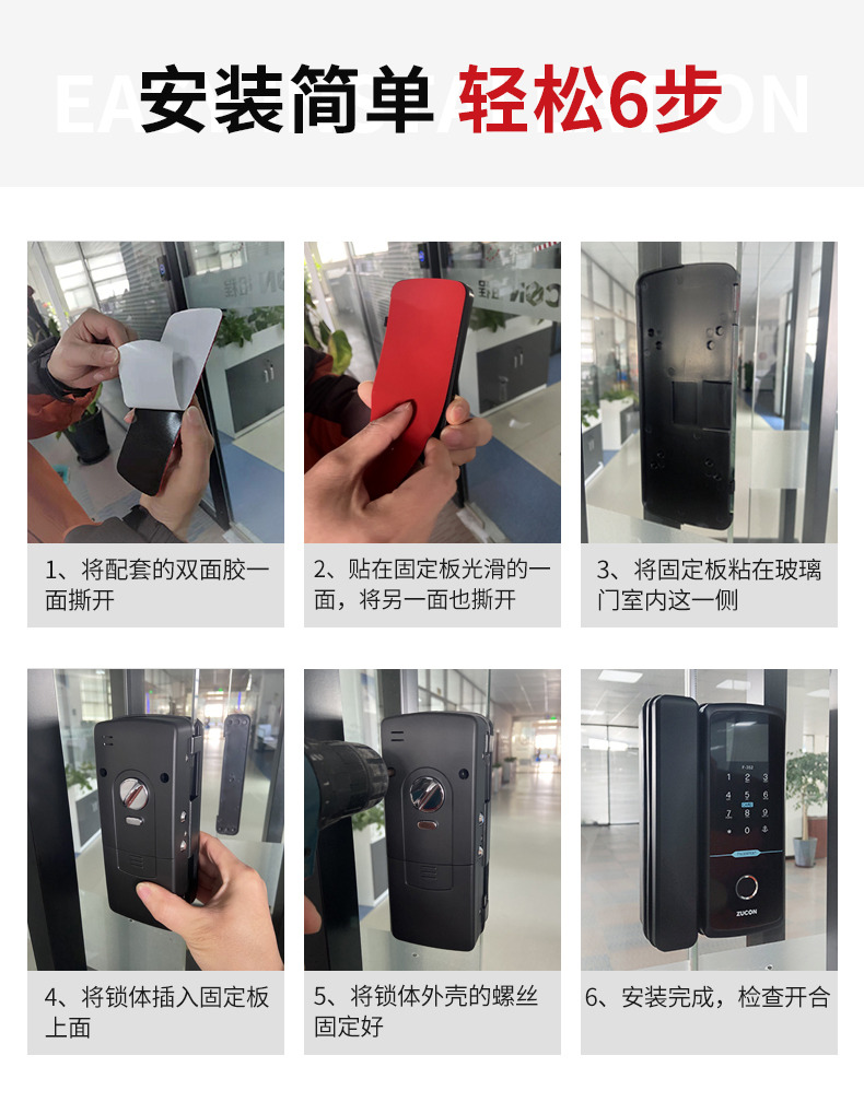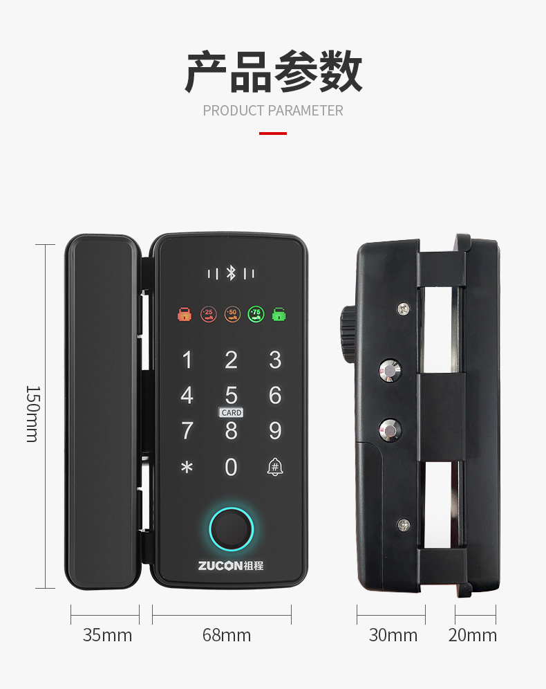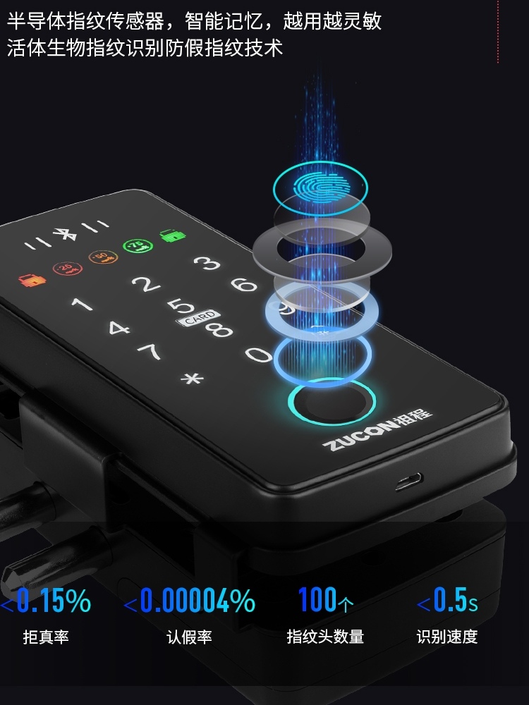 ZUCON祖程F340玻璃門(mén)指紋密碼鎖辦公室密碼遙控門(mén)鎖單雙門(mén)智能電子門(mén)禁鎖