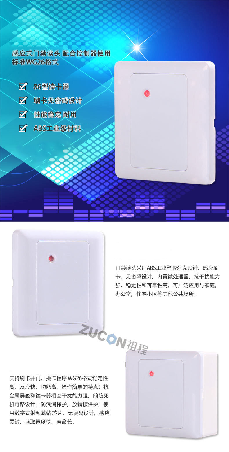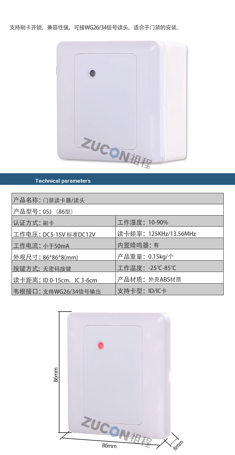 ZUCON祖程05J-86型門禁考勤讀卡器IDIC卡門禁讀頭刷卡機(jī)門禁刷卡器讀頭