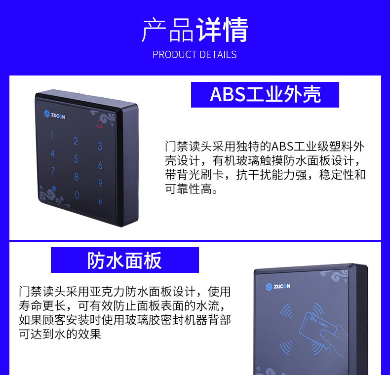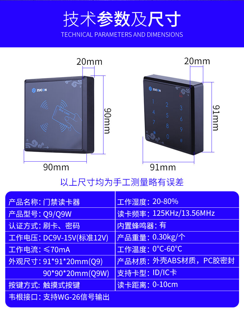 ZUCON祖程Q9、Q9W觸摸門(mén)禁讀卡器IC ID卡門(mén)禁讀頭觸摸按鍵門(mén)禁讀頭WG26讀頭