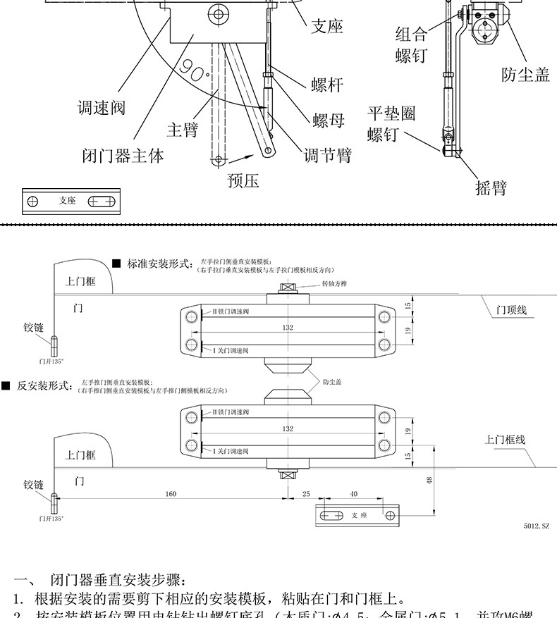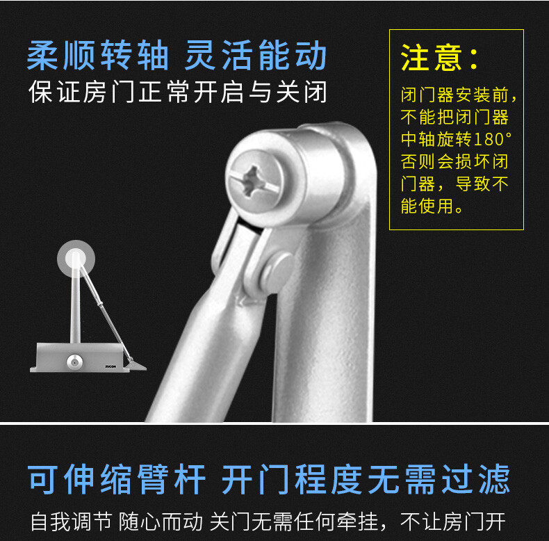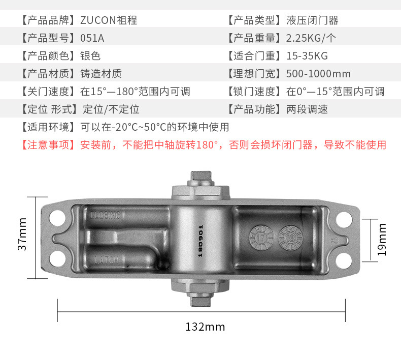 ZUCON祖程051A自動關(guān)門器不定位液壓緩沖閉門器家用門防火門15-35KG不定位