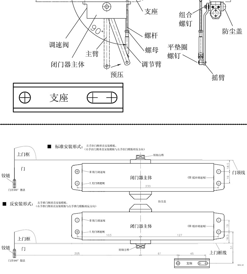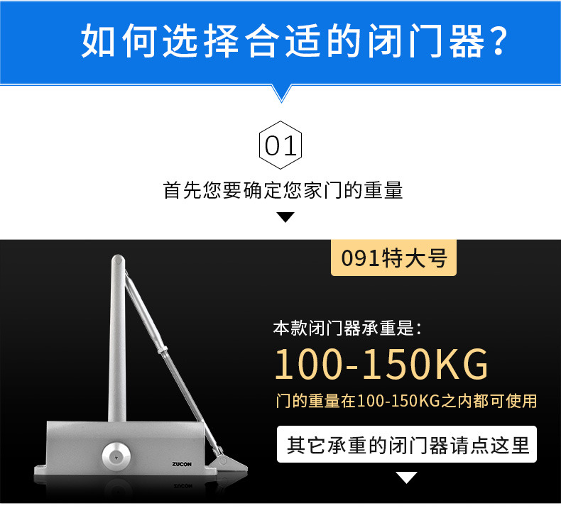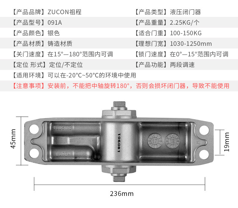 ZUCON祖程091A閉門器液壓緩沖不定位定位自動關(guān)門器家用門防火門100-150KG