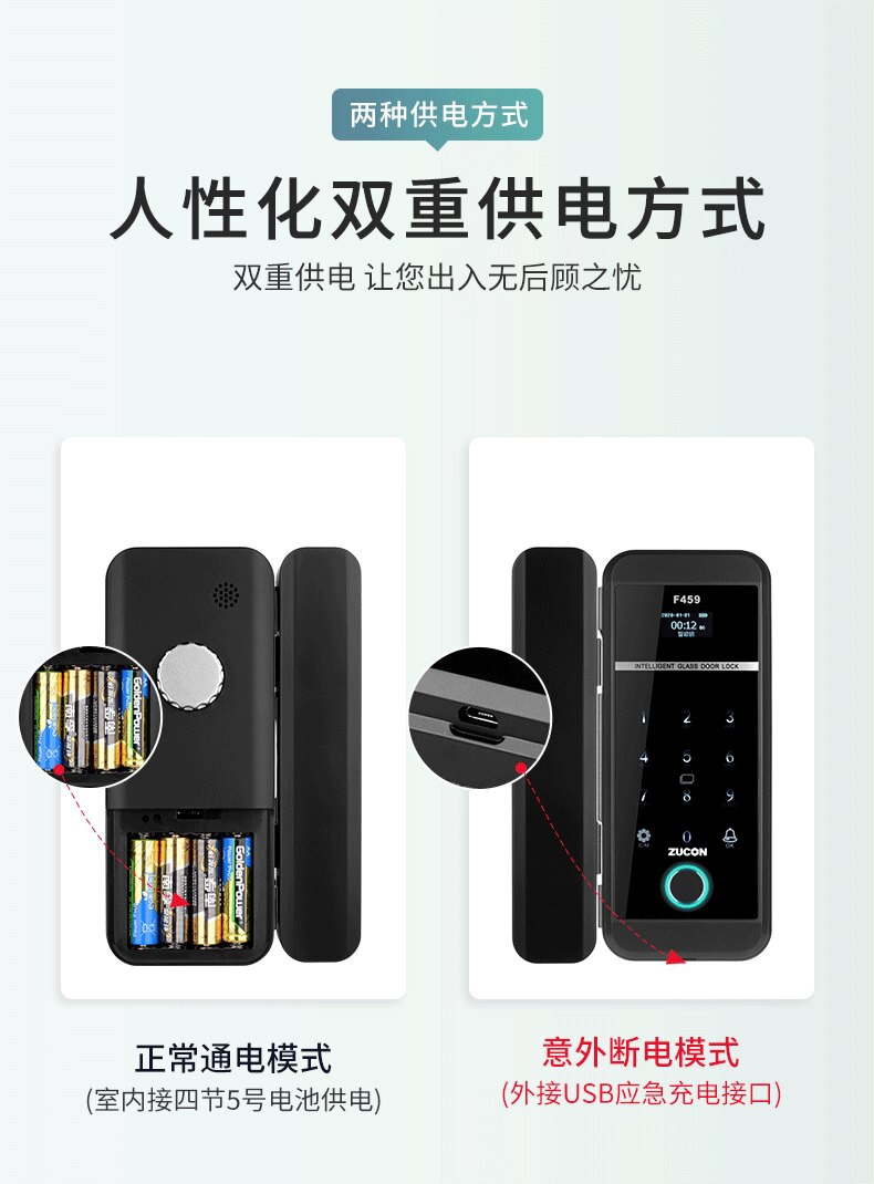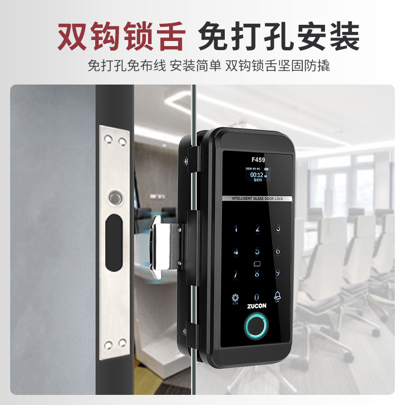 ZUCON祖程F459玻璃門鎖辦公室指紋鎖雙門免開孔智能電子密碼鎖門禁鎖