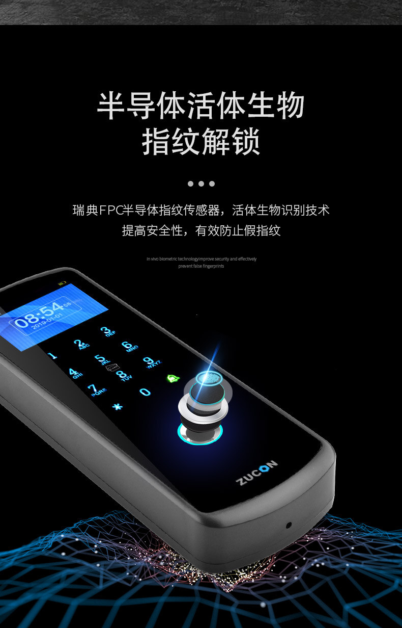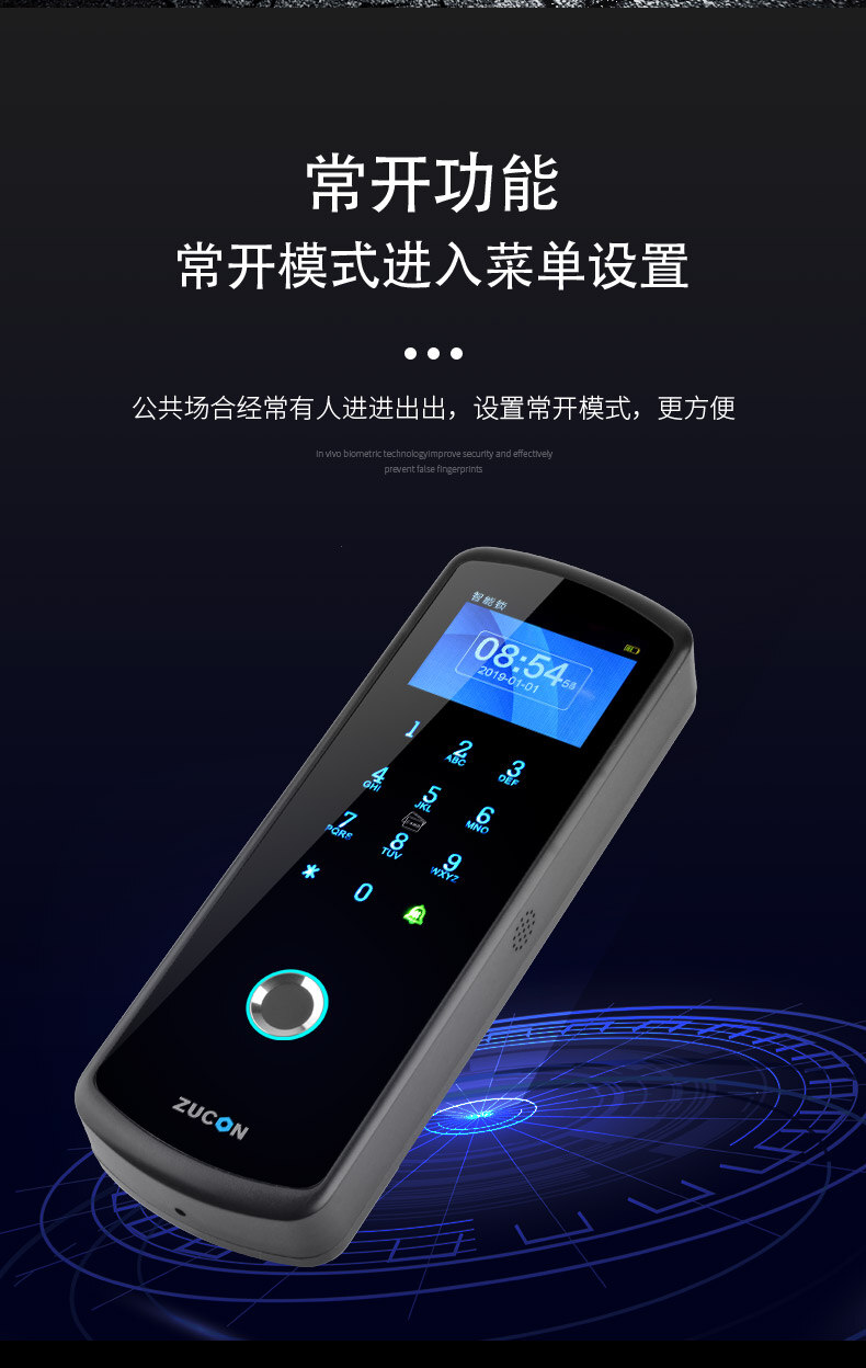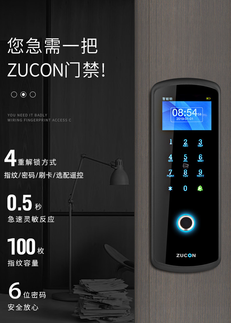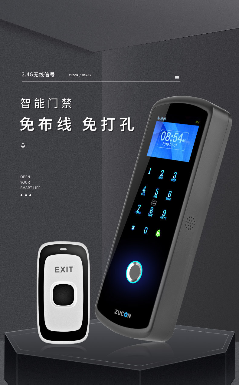 ZUCON祖程F23無(wú)線門(mén)禁鎖免布線指紋門(mén)禁系統(tǒng)一體機(jī)門(mén)禁套裝玻璃門(mén)禁鎖