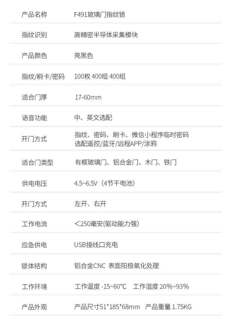 ZUCON祖程F491有框玻璃門指紋鎖雙門電子鎖密碼鎖雙開商鋪智能鎖免開孔