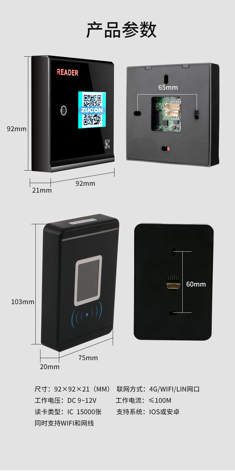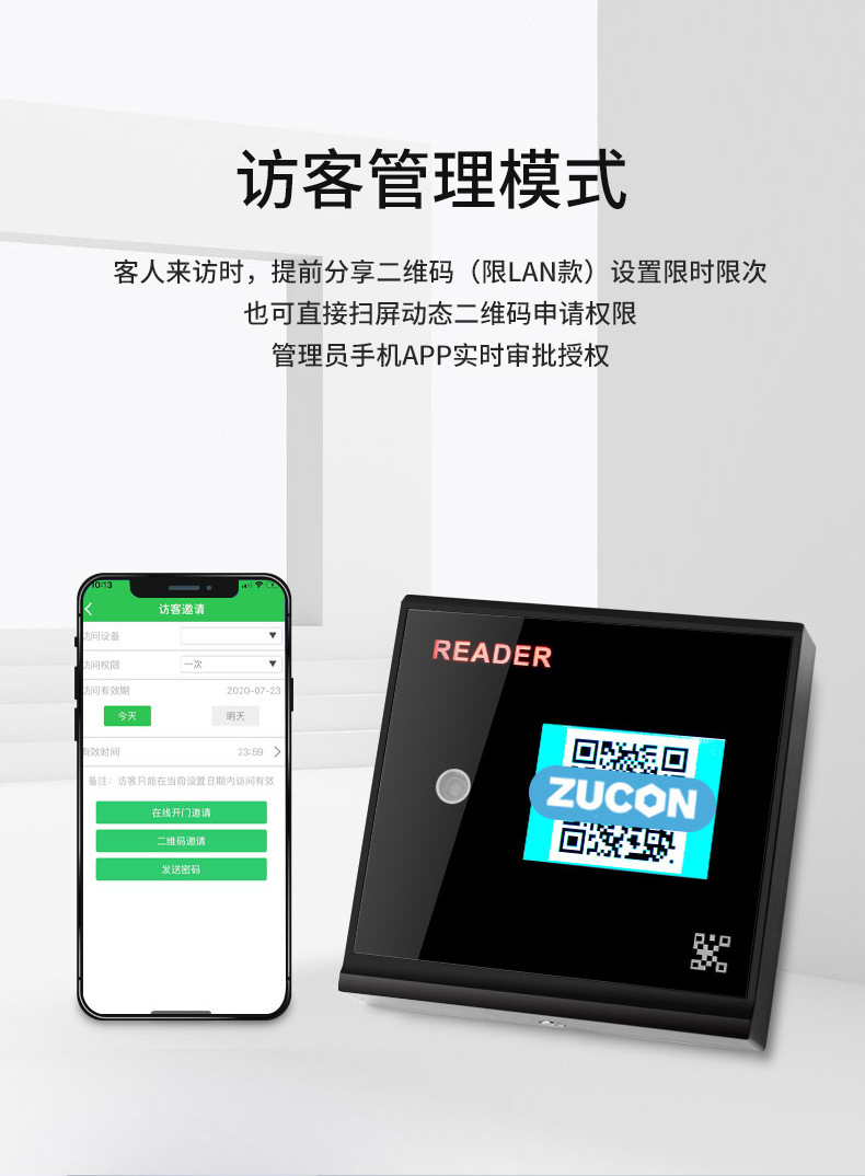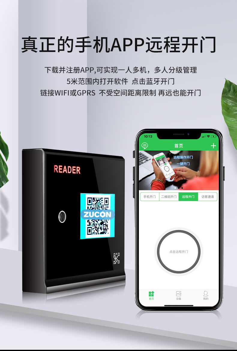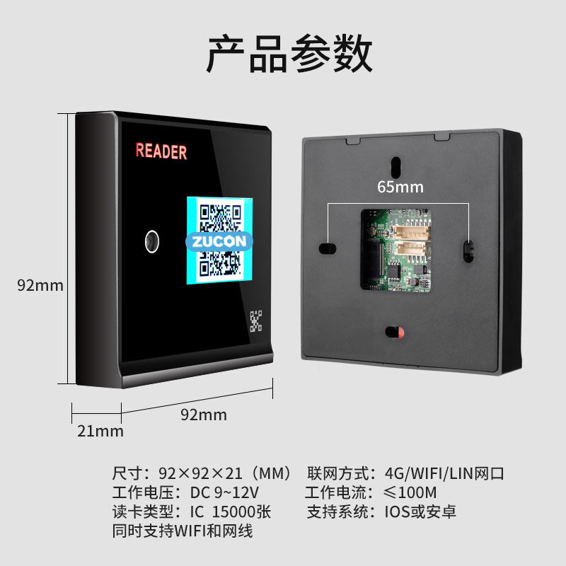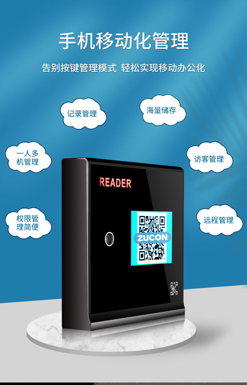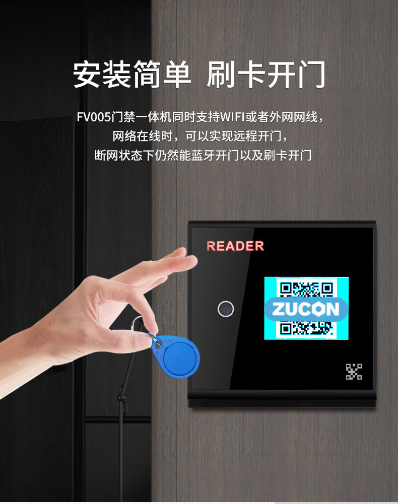 ZUCON祖程FV005二維碼藍牙ic刷卡門禁手機app遠程開門門禁系統(tǒng)一體機