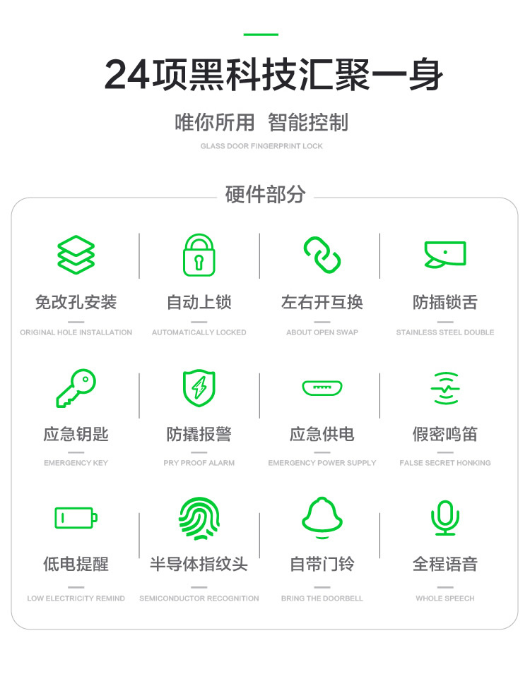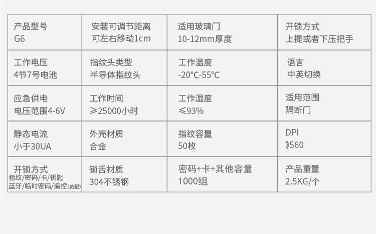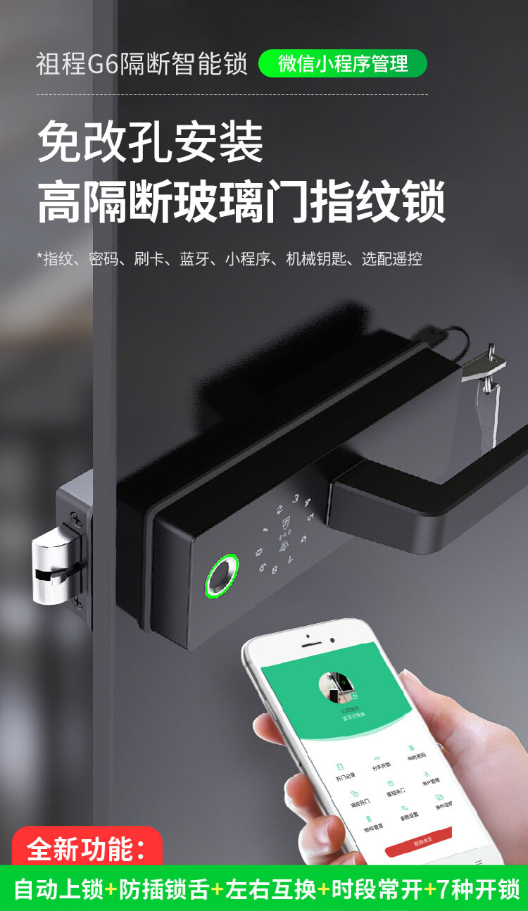ZUCON祖程G6玻璃門(mén)指紋密碼鎖隔斷鎖單開(kāi)辦公室刷卡智能高隔間執(zhí)手鎖