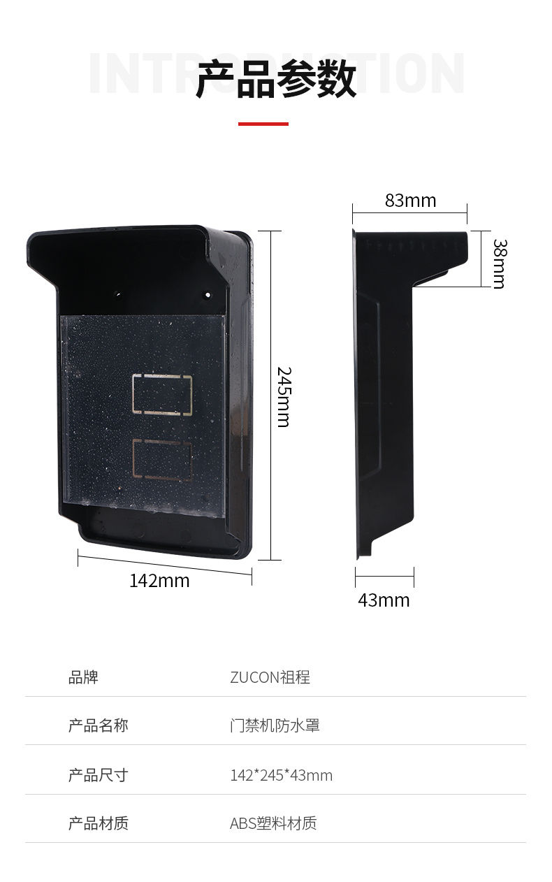 ZUCON祖程防水罩門禁機(jī)專用防水罩室外防雨延緩老化保護(hù)罩門禁一體機(jī)保護(hù)殼