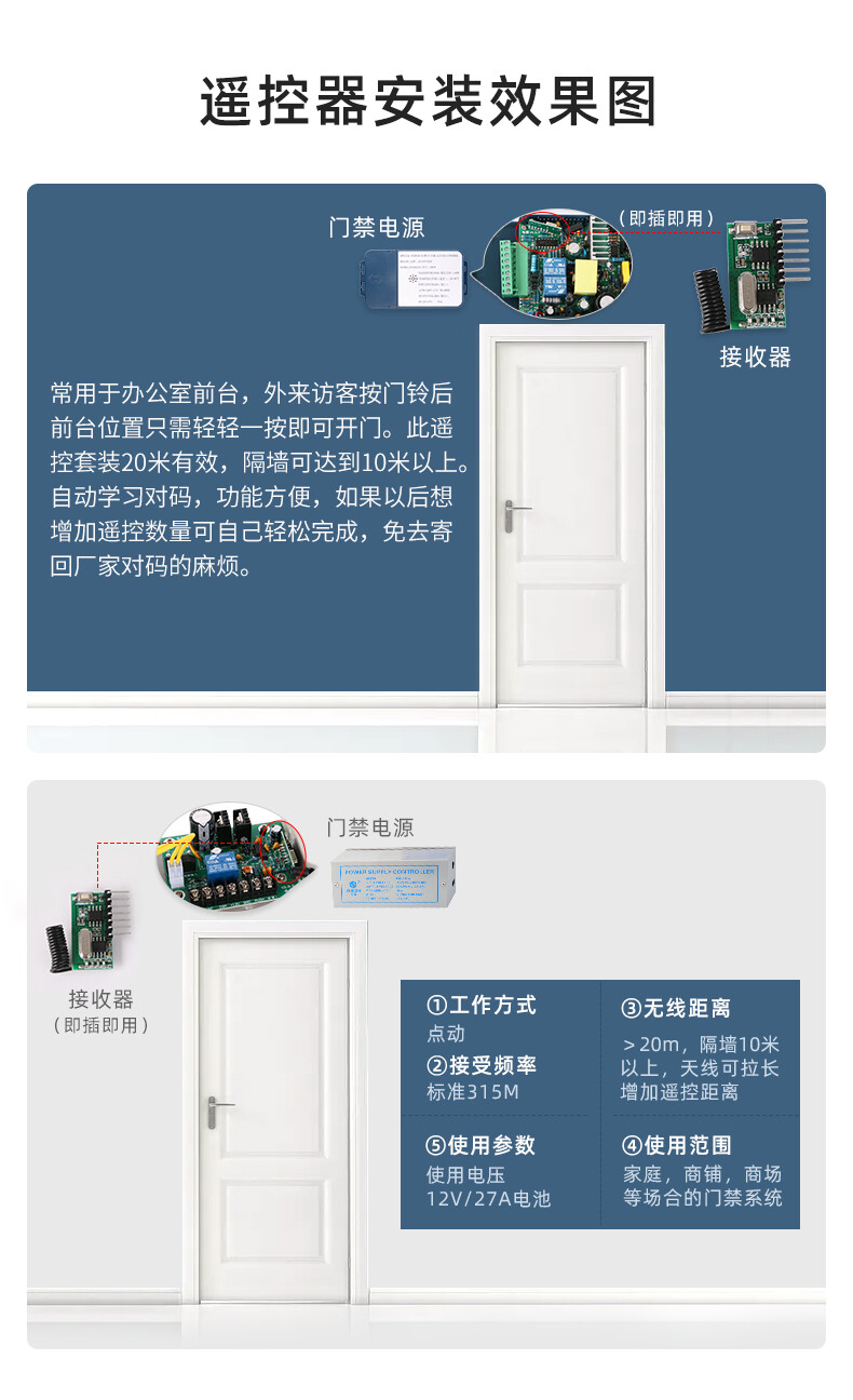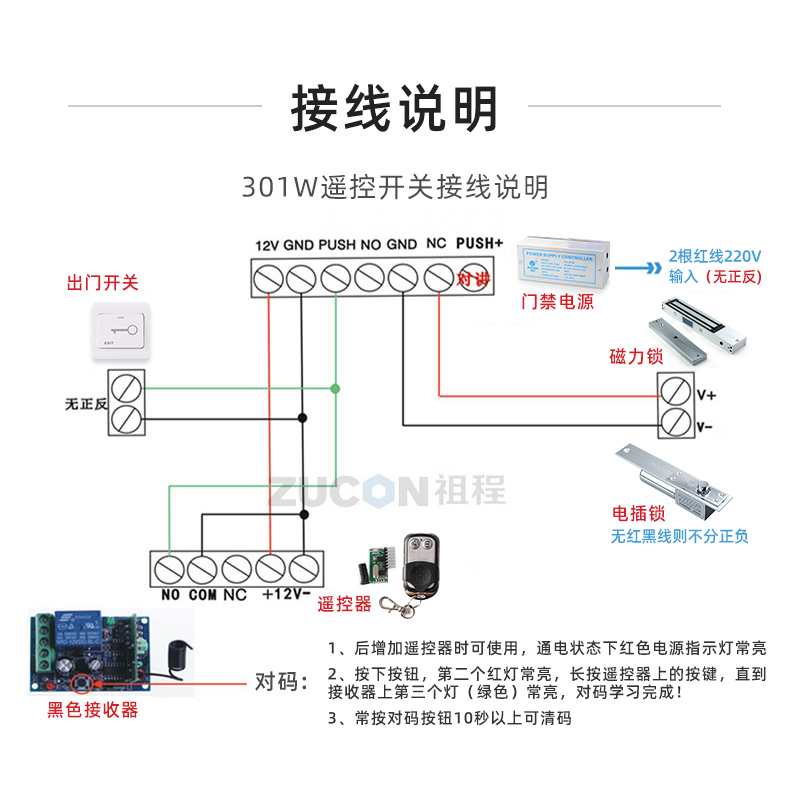 ZUCON祖程K50門禁系統(tǒng)套裝配套遙控器 即插即用遙控開關(guān) 電子遙控器315M學(xué)習(xí)型