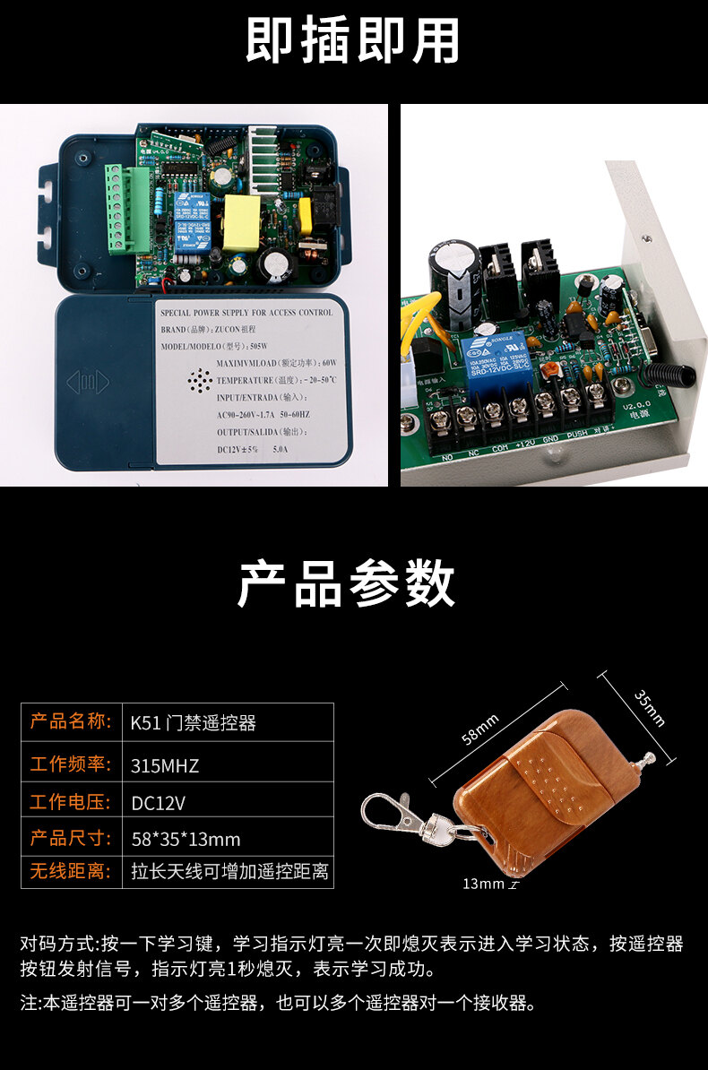 ZUCON祖程k51門禁遙控器無線遙控器開關 電子門禁系統(tǒng)配套遙控