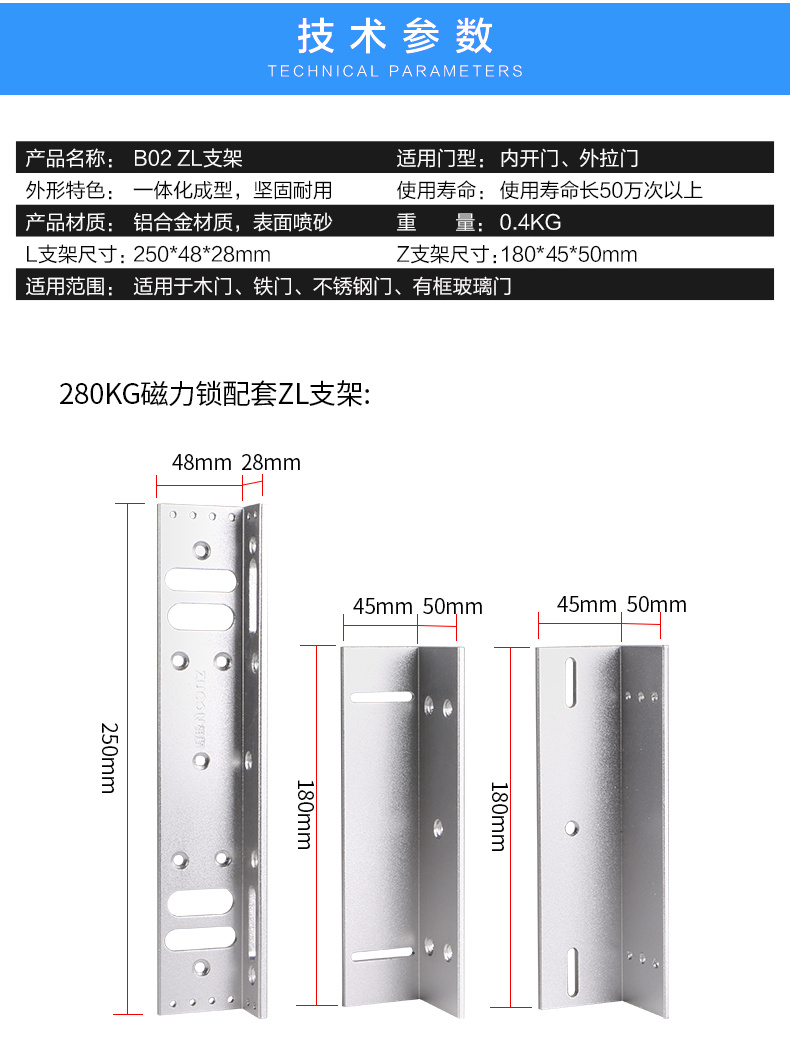 ZUCON祖程 磁力鎖ZL支架 280公斤磁力鎖L型支架 磁力鎖配套支架
