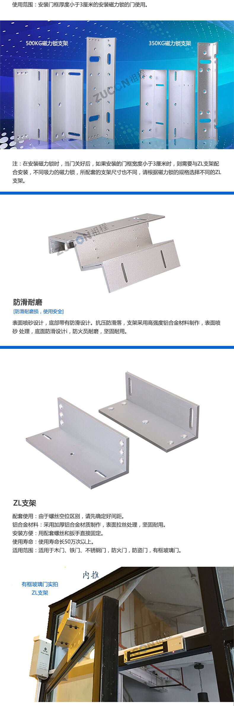 ZUCON祖程 磁力鎖ZL支架350KG500KG磁力鎖L型支架 磁力鎖配套支架