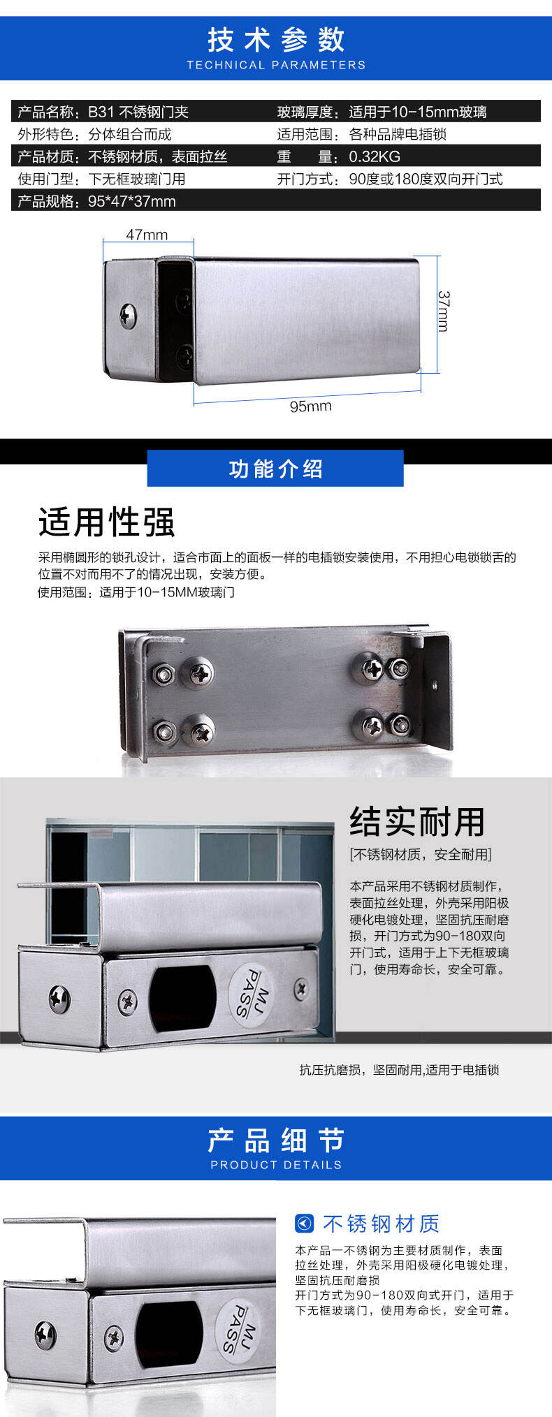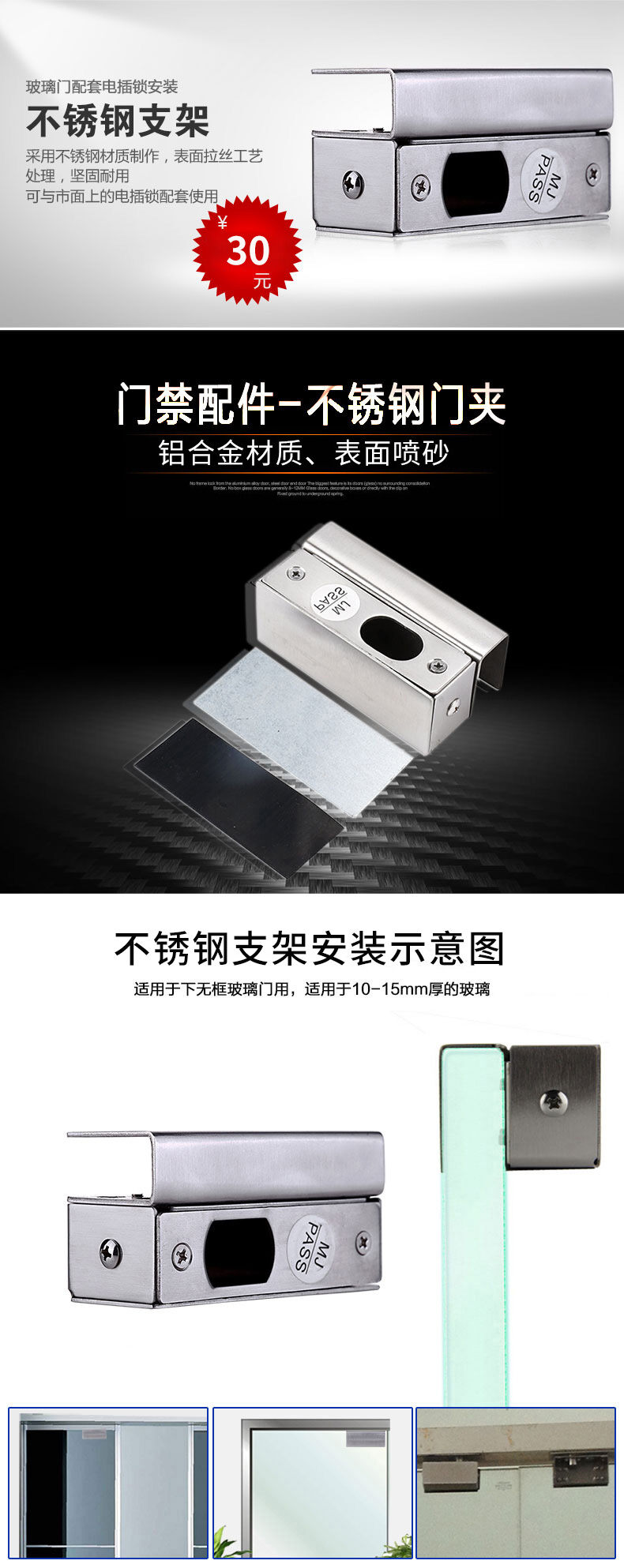 ZUCON祖程 電插鎖不銹鋼支架 電插鎖小門(mén)夾 玻璃門(mén)不銹鋼門(mén)夾