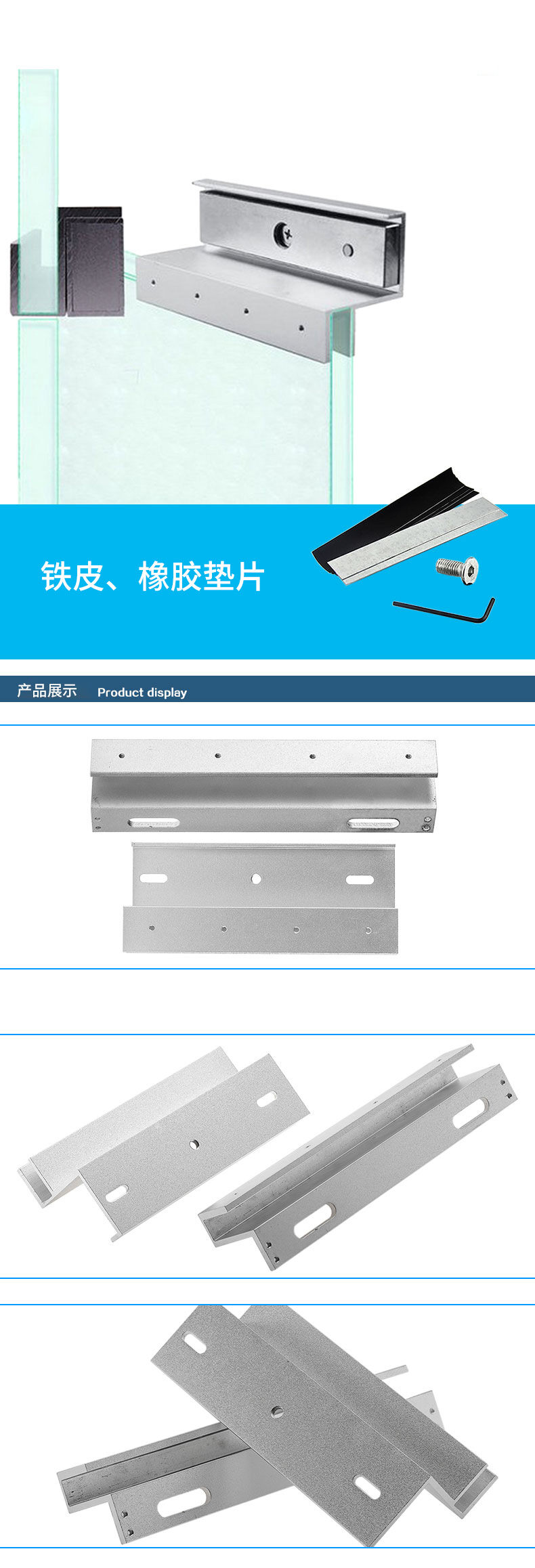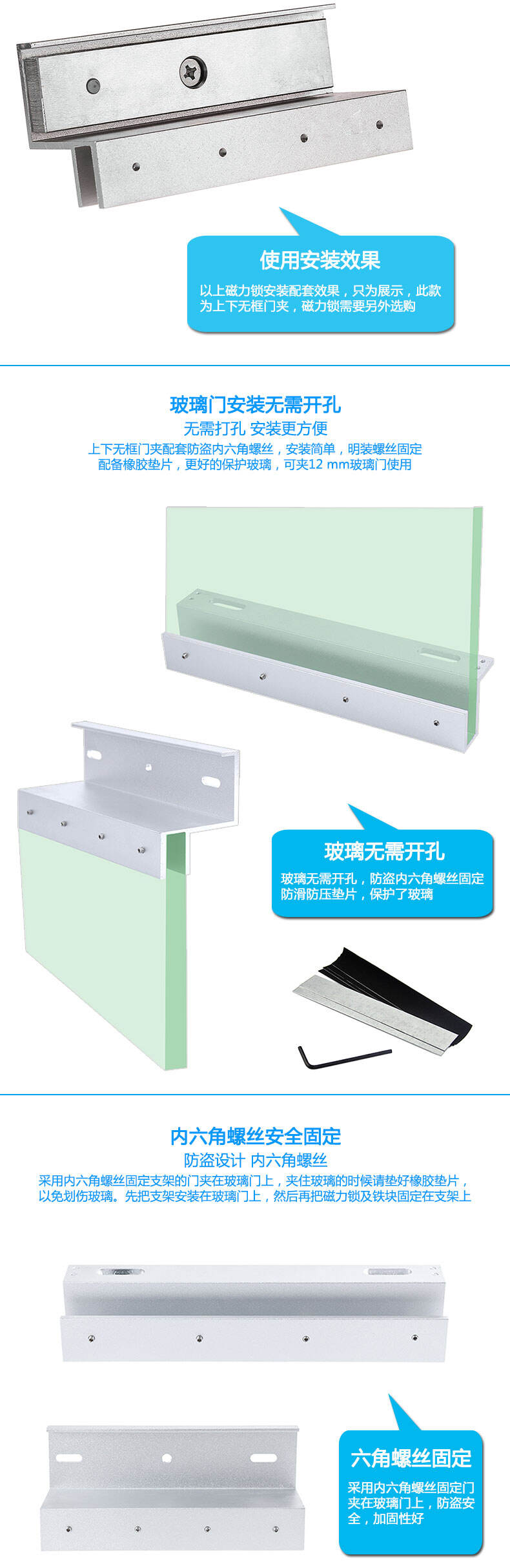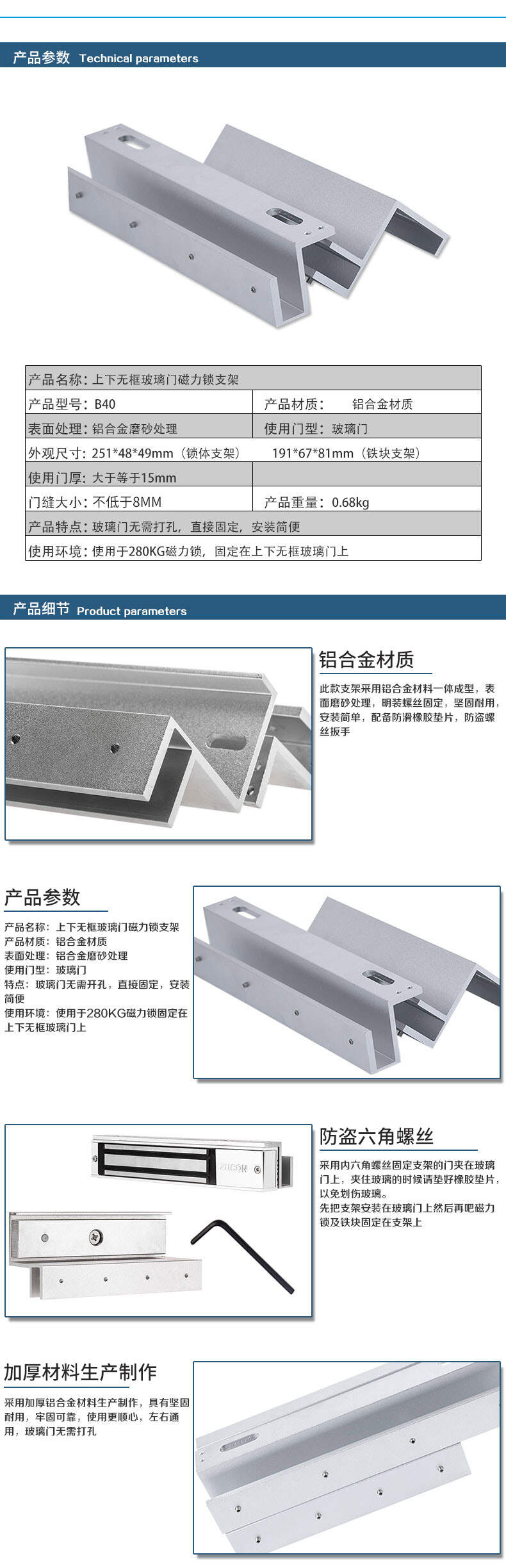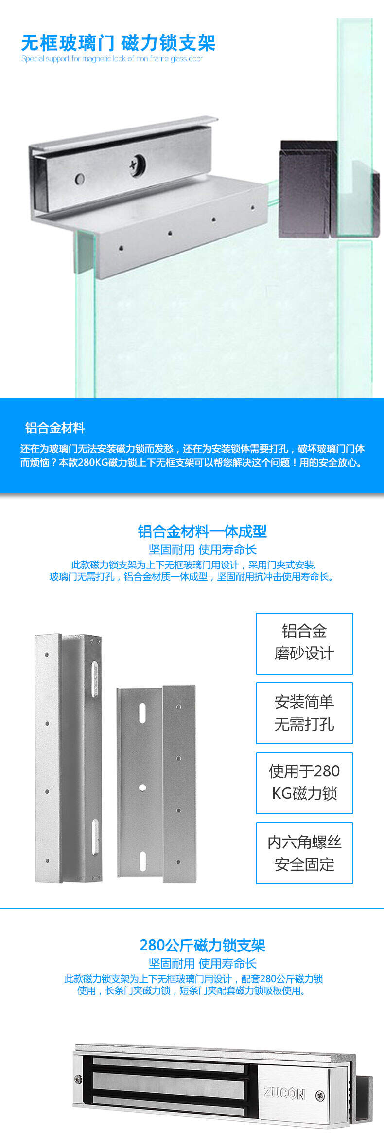 ZUCON祖程玻璃門磁力鎖上下無框支架 無框玻璃門磁力鎖支架 280KG磁力鎖支架