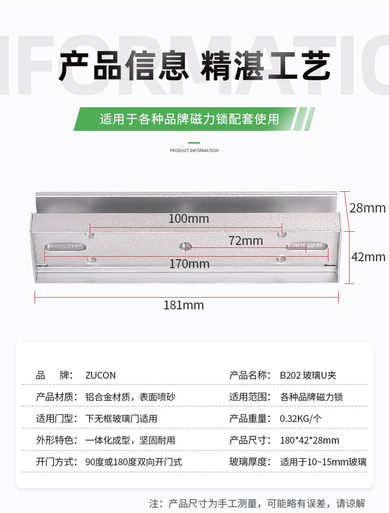 ZUCON祖程磁力鎖U型夾 280公斤磁力鎖U型支架 磁力鎖玻璃門(mén)夾 磁力鎖配套門(mén)夾