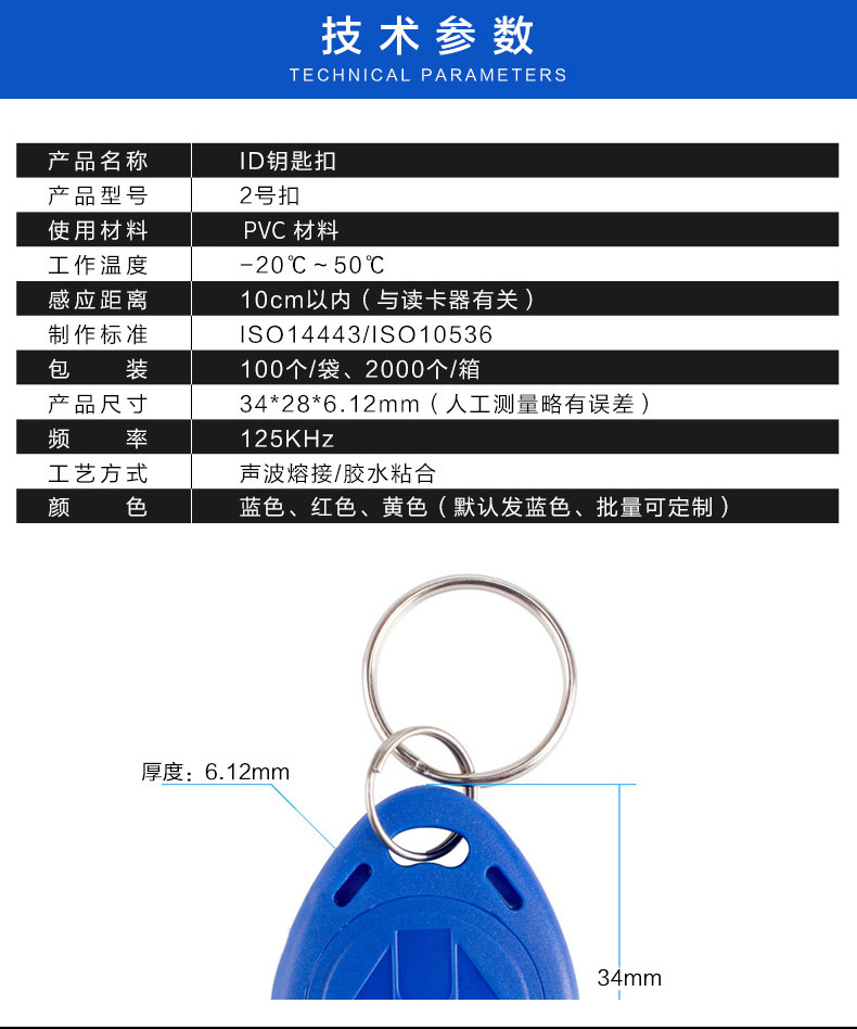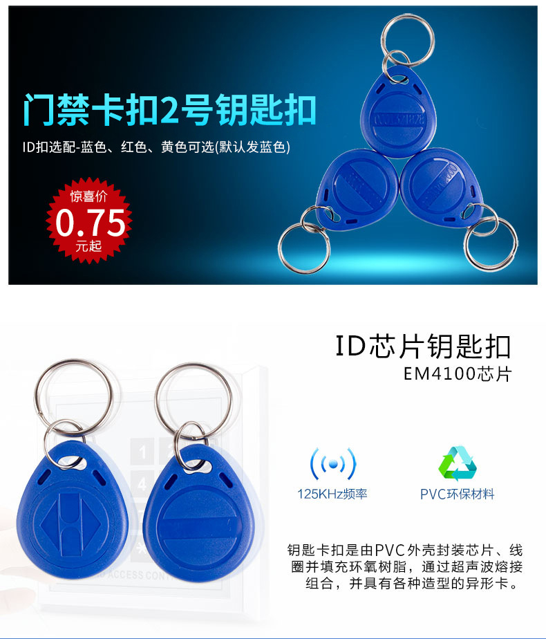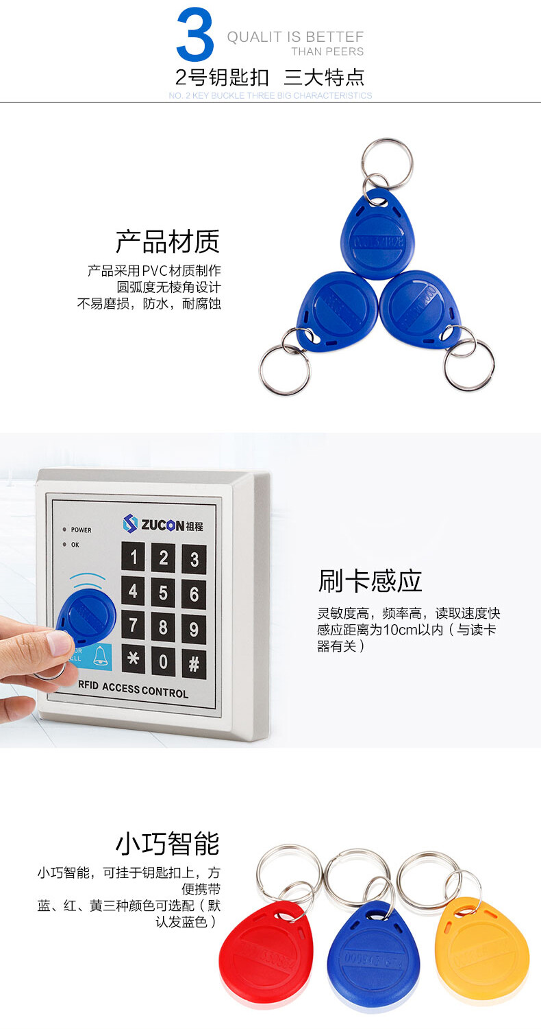 ZUCON祖程2號感應卡扣門禁系統(tǒng)考勤卡扣圓扣鑰匙掛扣卡ID小卡扣