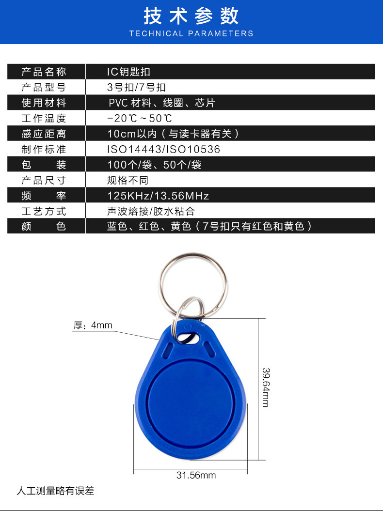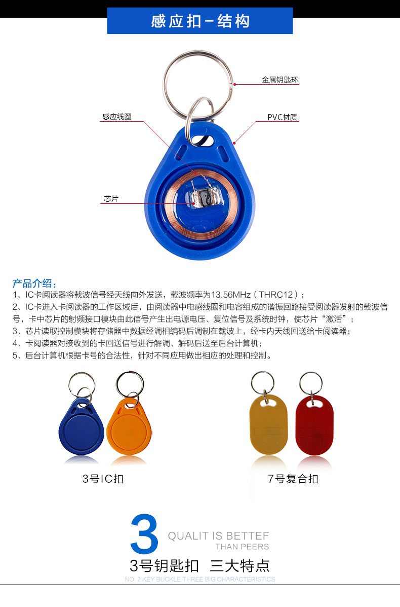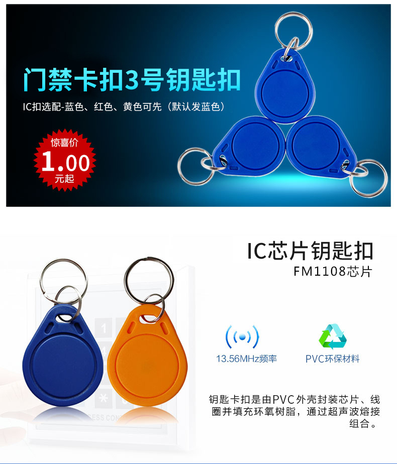 ZUCON祖程3號(hào)IC感應(yīng)卡扣 門禁系統(tǒng)考勤扣卡鑰匙掛扣卡IC小卡異形卡