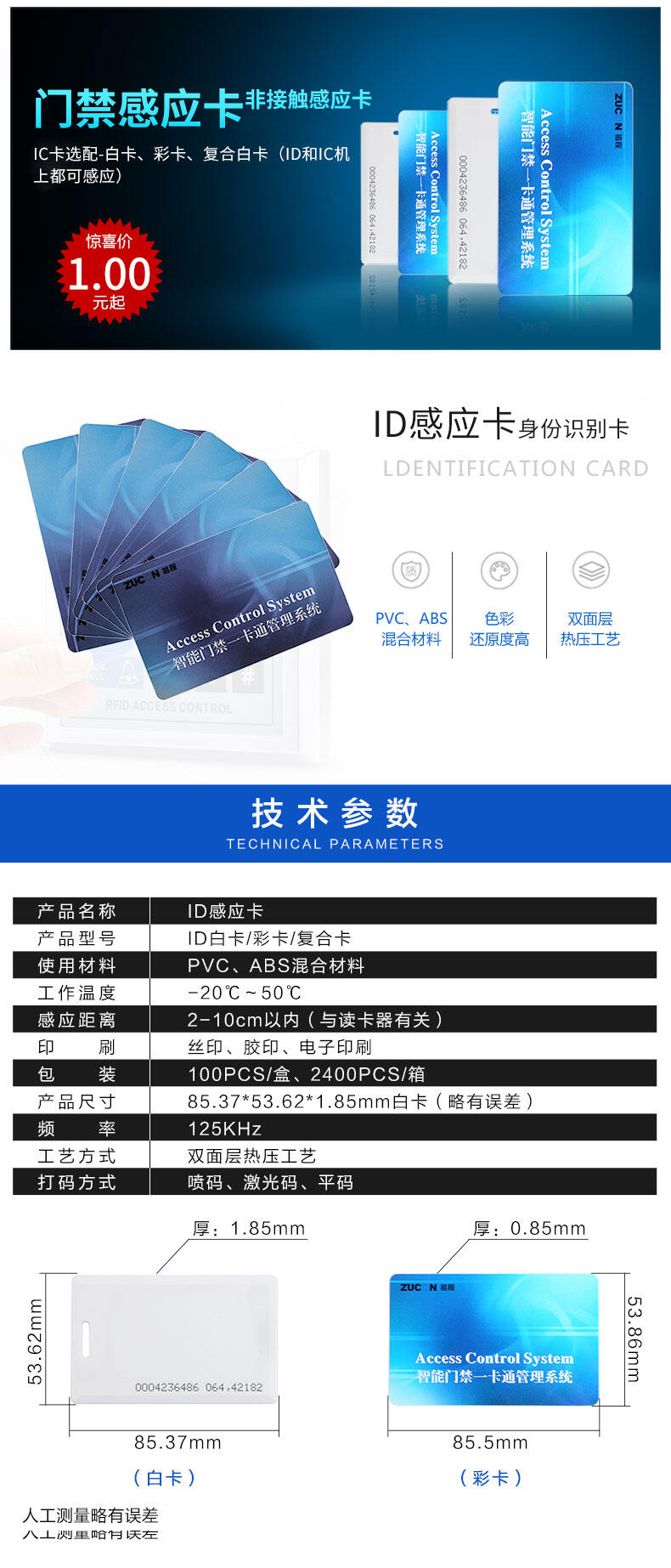 ZUCON祖程ID彩卡門禁考勤系統(tǒng)感應(yīng)卡ID門卡考勤卡EM卡薄卡厚卡彩卡選配