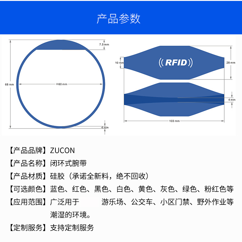 ZUCON祖程腕帶卡硅膠手環(huán)IDIC感應(yīng)鎖 游樂(lè)場(chǎng)小區(qū)門禁野外防水卡