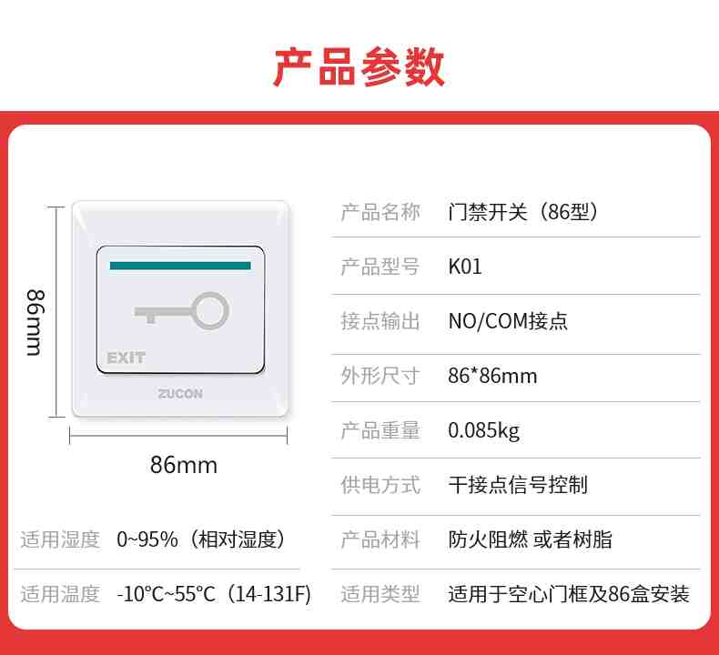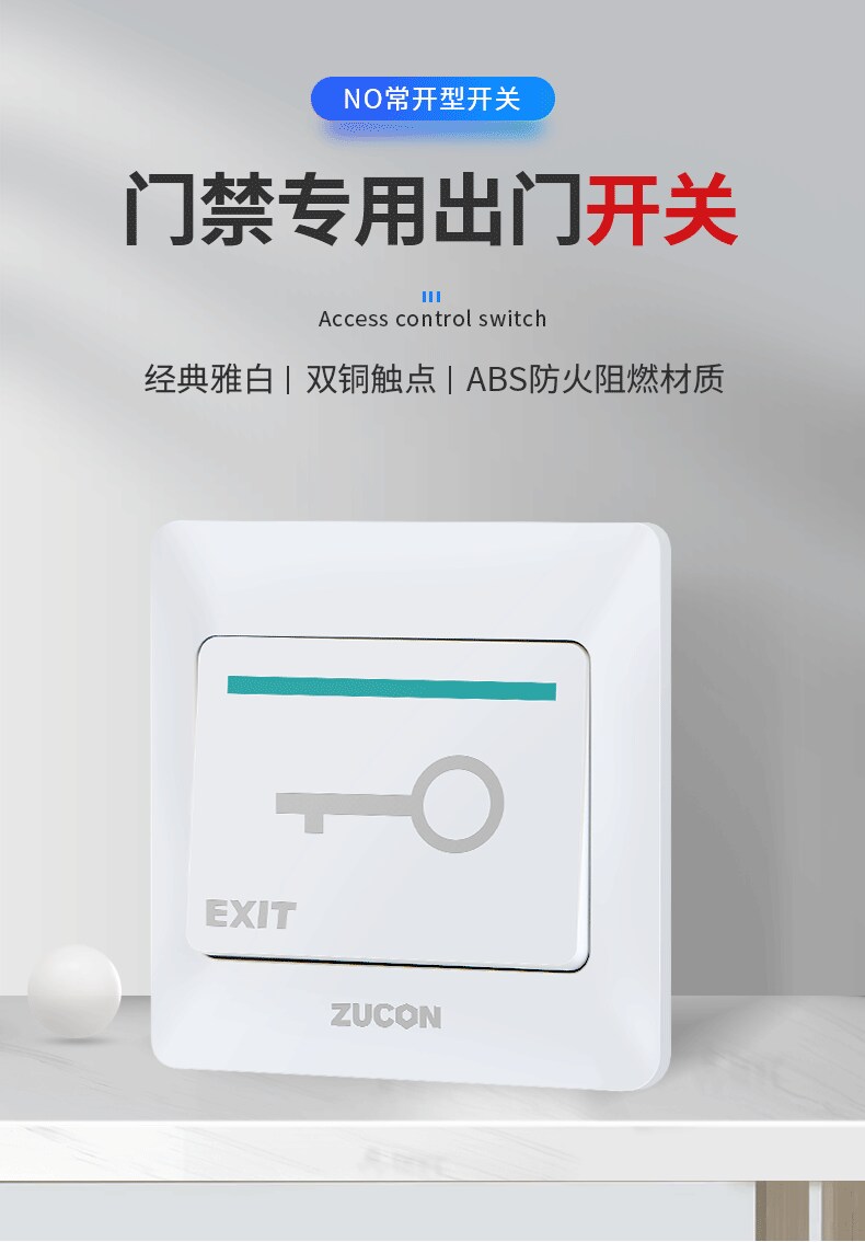 ZUCON祖程K01電子門禁開關(guān) 門鎖開關(guān) 出門按鈕 86盒大小開關(guān) 亞白色