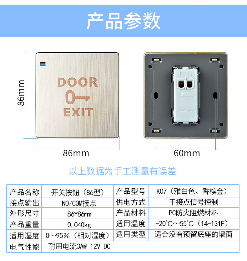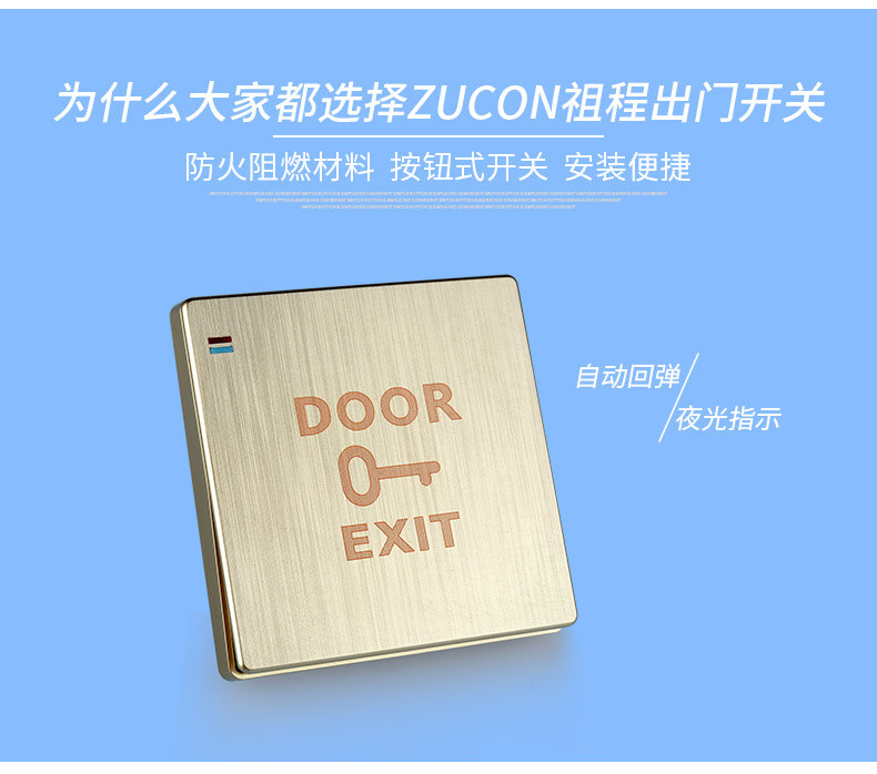 ZUCON祖程K07電子門禁開關(guān)門鎖開關(guān)出門按鈕雅白拉絲香檳金兩色可選