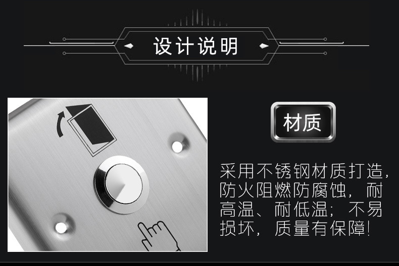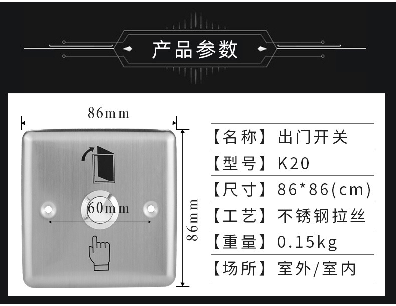 ZUCON祖程K20金屬拉絲門禁系統(tǒng)開關(guān)門鎖出門按鈕不銹鋼防水開關(guān)金屬拉絲