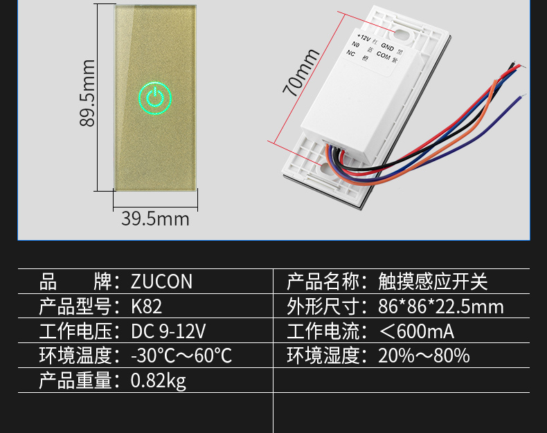 ZUCON祖程K82觸摸出門按鈕祖程電子門禁開關門鎖開關紅外觸摸開關