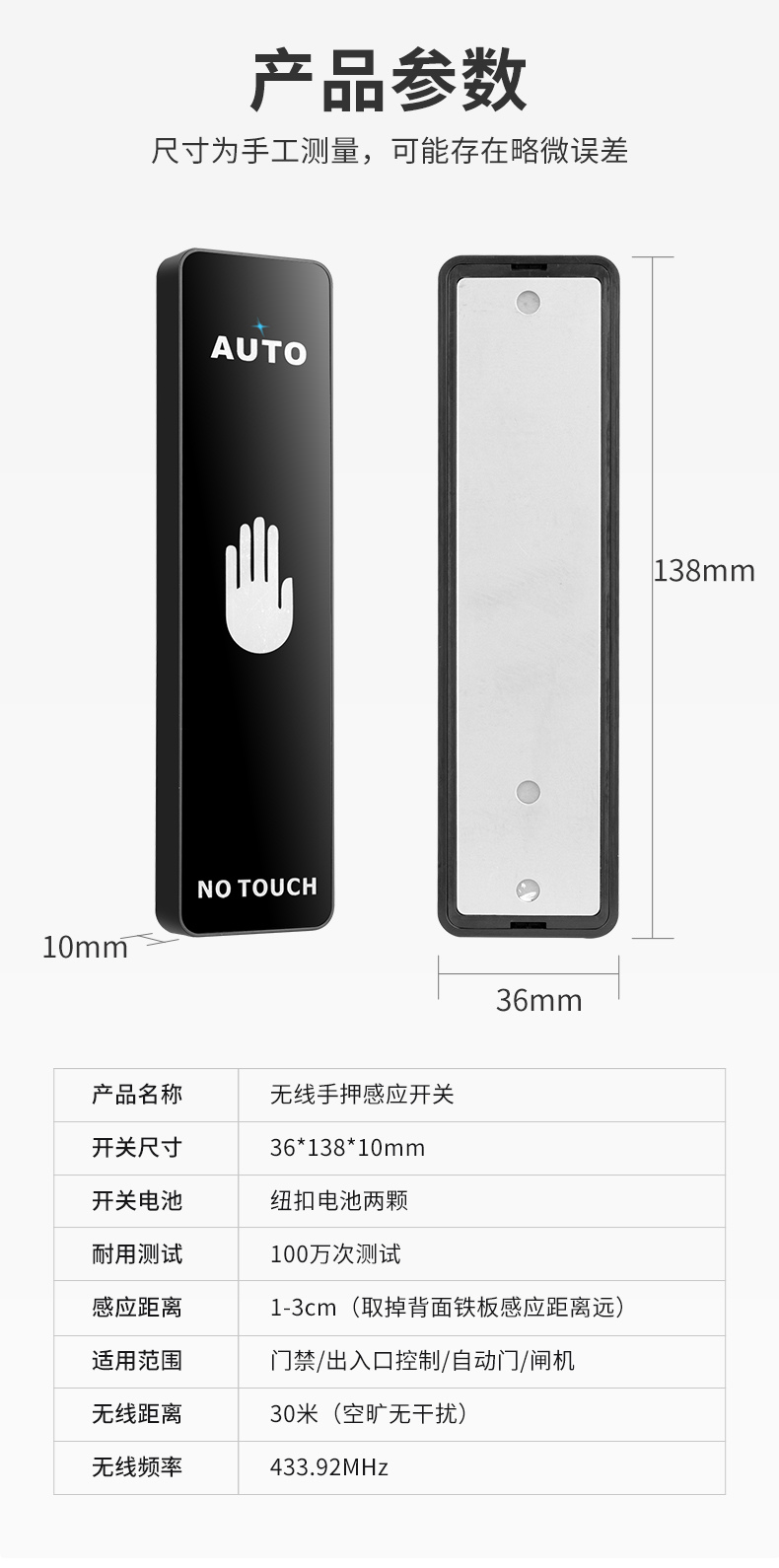 ZUCON祖程K89無線感應(yīng)開關(guān)門禁系統(tǒng)觸摸出門按鈕電池免布線出門開關(guān)