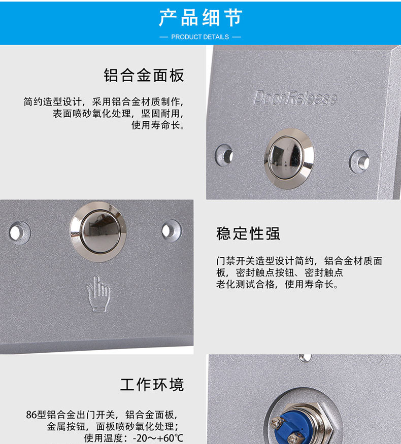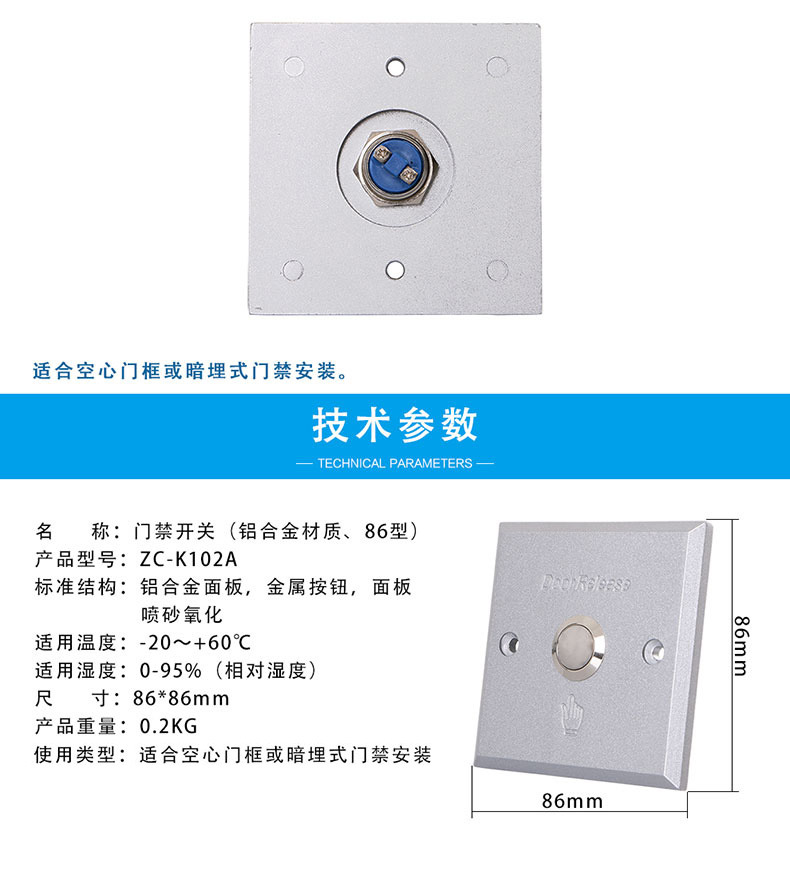 ZUCON祖程ZC-K102A 電子門禁開關(guān) 門鎖開關(guān) 出門按鈕 明裝暗裝 鋁合金