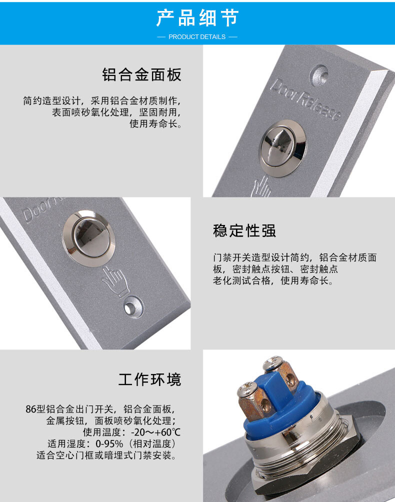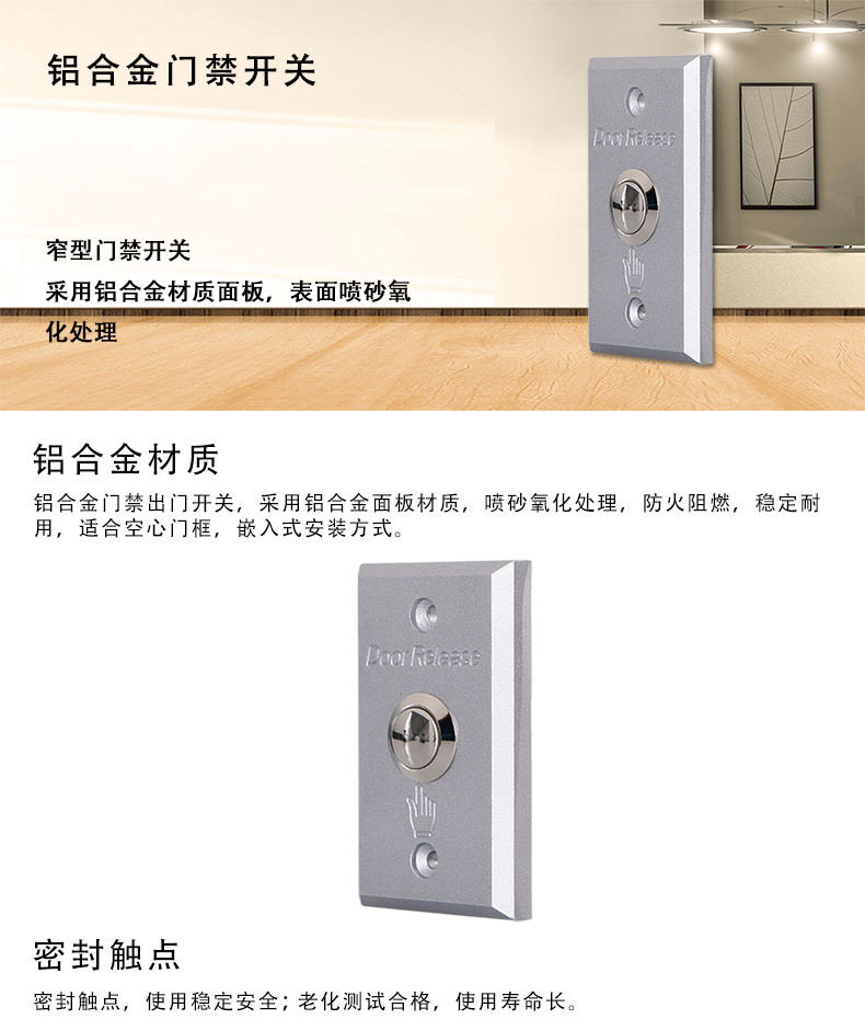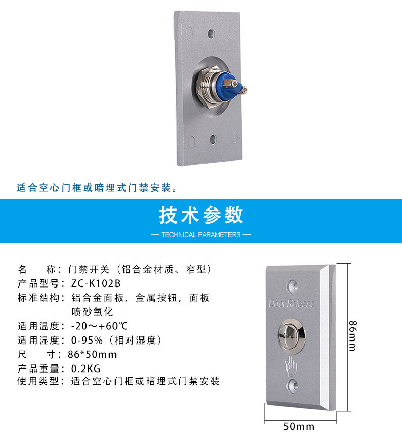 ZUCON祖程ZC-102B窄型鋁合金電子門禁開關(guān)門鎖開關(guān)出門按鈕鋁合金窄型